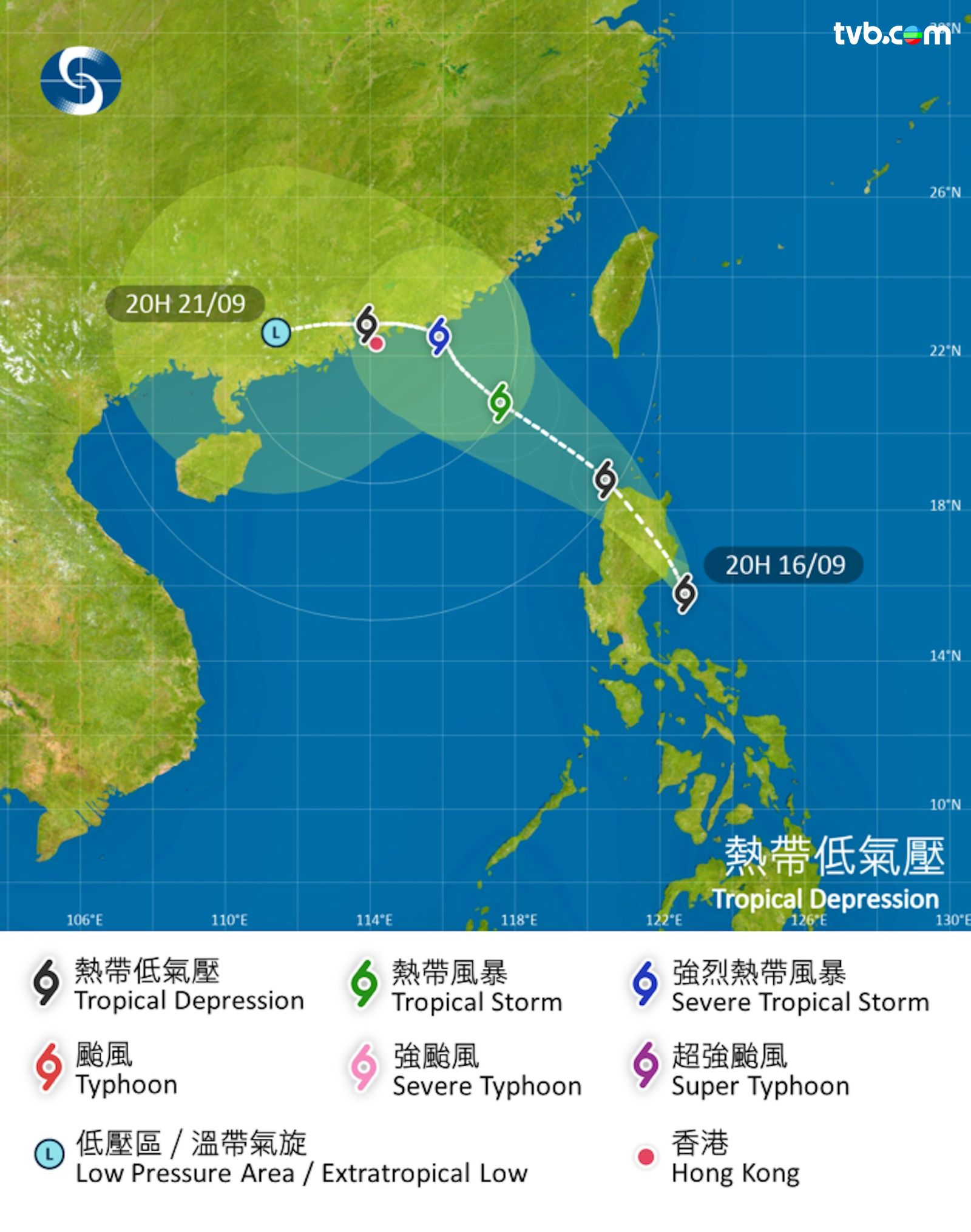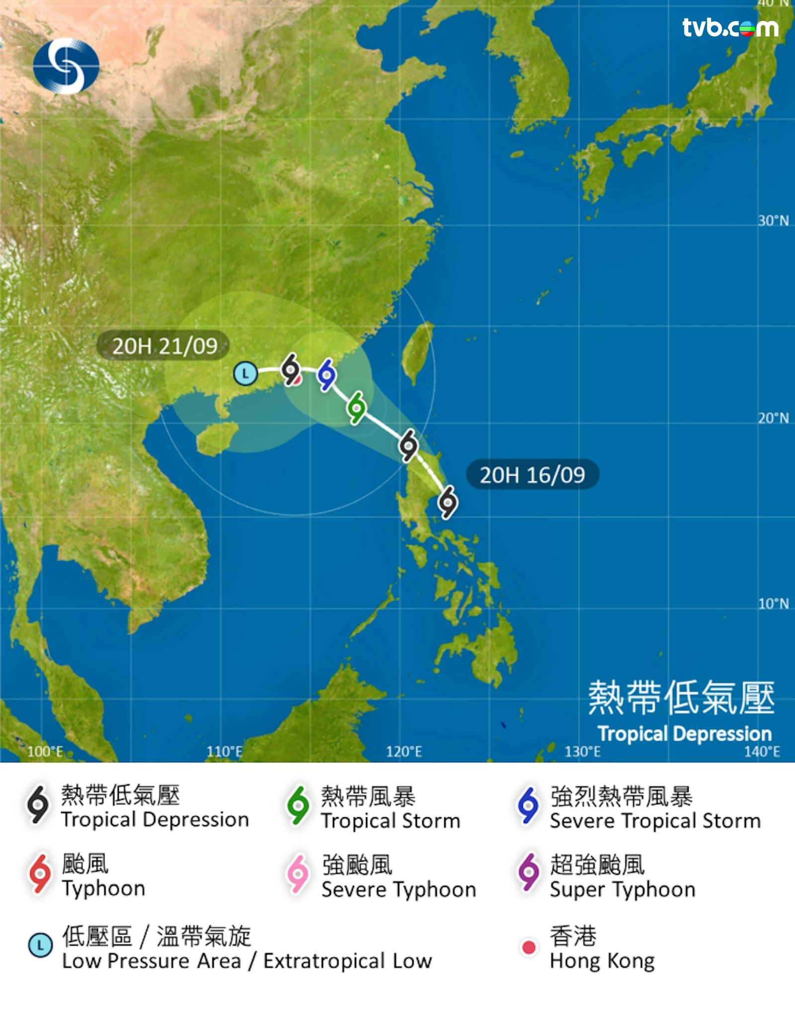 天文台表示,位於呂宋附近的低壓區正逐步增強,並於晚上發展成熱帶低氣壓,預料於16至17日穿越呂宋並進入香港800公里範圍,之後大致向廣東沿岸移動並逐漸加強;惟受東北季候風影響,其移動路徑及強度仍存在變數。由於系統環流較小,需更接近香港時才會對本地天氣造成明顯影響,天文台會按其強度、強風區與本港距離及本地風力變化,評估是否在周五(19日)改掛三號或更高熱帶氣旋警告信號。