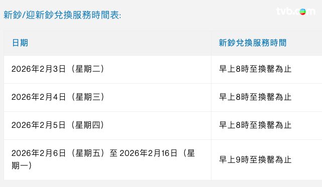 中國銀行(香港)全線分行及理財中心將於2月3日至2月5日延長服務時間,提早於早上8時營業,額外營業時段會專門提供換鈔服務,分行設有兌換新鈔專窗及派籌登記服務。
