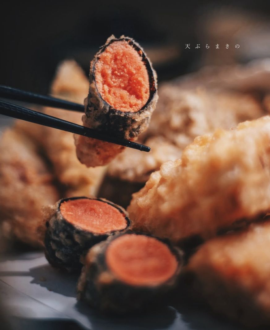 天ぷらまきの的天婦羅會蘸上薄薄粉漿,再放入合適油溫的熱油中炸熟,一口咬下去皮皮酥脆,內裡有肉汁,但又不會油膩,好吃!