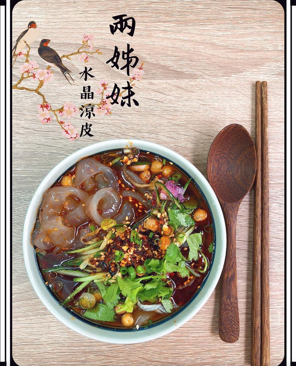 香港米芝蓮必比登推介的兩姊妹涼皮有限公司主打水晶涼皮,煙韌的涼皮配上辣椒油、青瓜絲、炸豌豆等配料,食落麻辣味濃,辛香過癮。但不吃辣的朋友都可以一試,事關店內提供六個辣度,由不辣、BB辣及大辣都有齊,不辣的涼皮清爽開胃,一樣好吃!