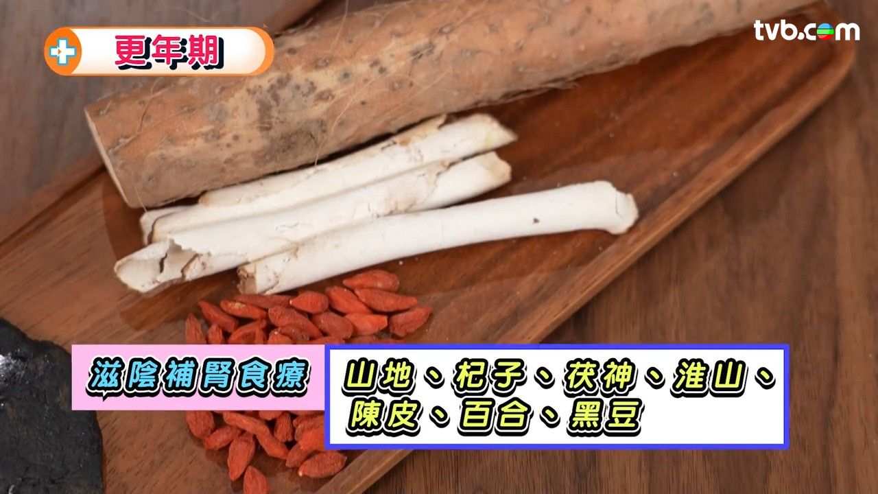 註冊中醫師何慧欣推介了一款滋陰補腎湯水改善潮熱、盜汗、皮膚乾燥等問題,材料有山地、杞子、茯神、淮山、陳皮、百合、黑豆,情況許可以加入烏雞或乾的海鮮。