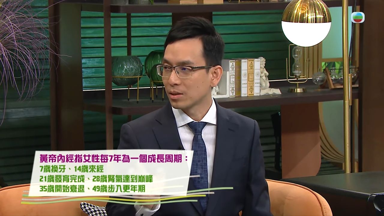 甘博士指出,更年期是指女性生殖系統自然衰退的階段,在香港來說女性平均達到51歲,就會開始步入更年期。從中醫角度,《黃帝內經》中認為女性每七年為一個成長周期,例如七歲換牙、十四歲後迎來月經、二十一歲發育完成,二十八歲腎氣達到巔峰,三十五歲開始衰退,四十九歲開始步入更年期。而在中醫角度認為假若女性低於四十五歲踏入更年期,則可視為過早,腎氣水平亦可能較低,將會容易出現提早衰老及患上慢性疾病;假若太遲踏入更年期,亦可能與其他身體問題息息相關,例如內分泌失調、癌症,有需要向醫生了解。