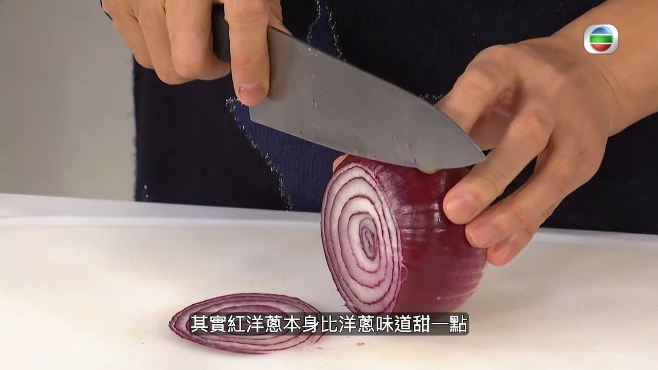 首先將檸檬和香橙切半,把紅洋蔥橫向切開。