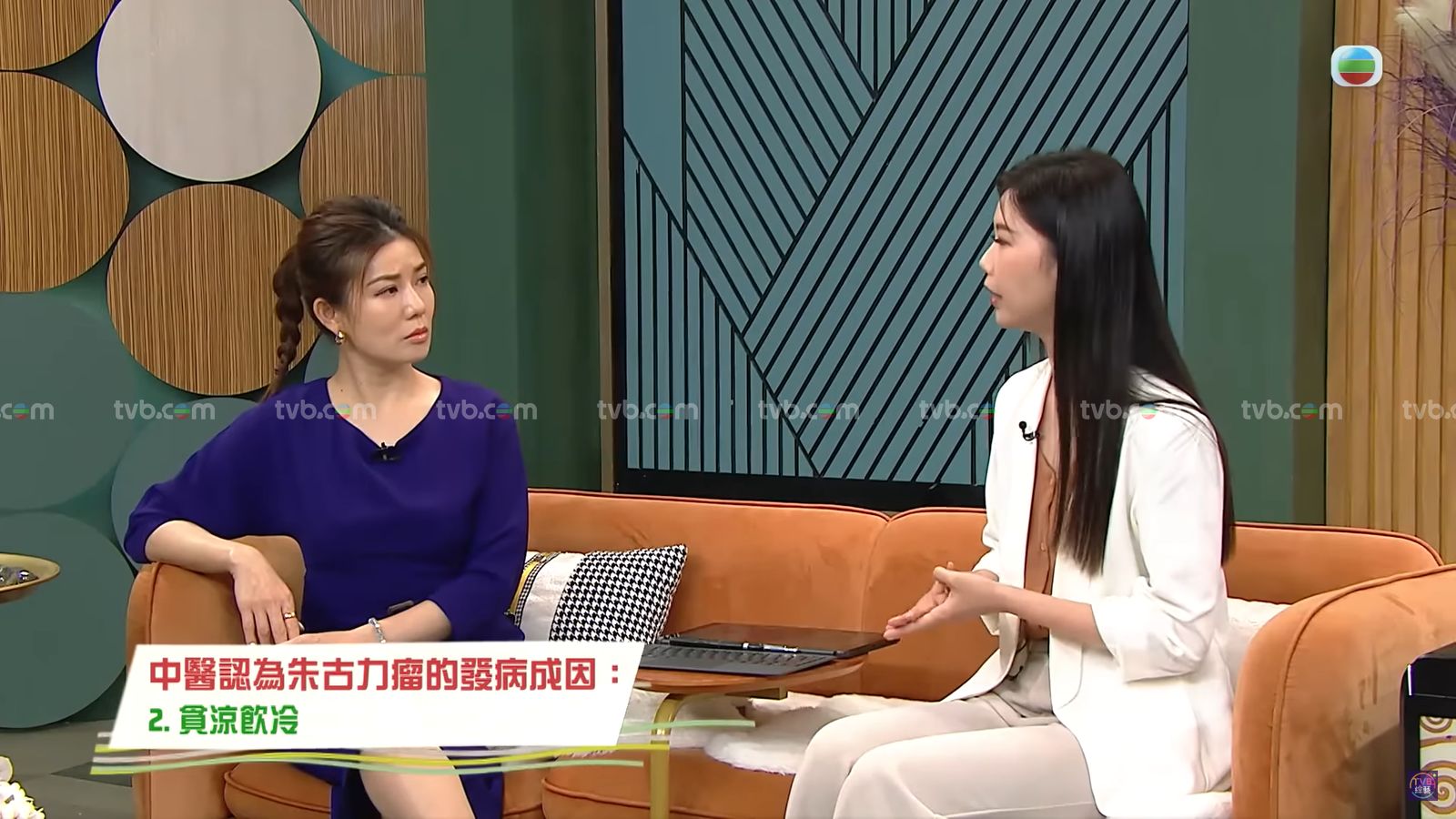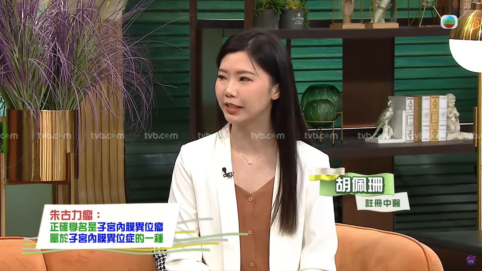 TVB節目《流行都市》請來註冊中醫師胡佩珊從中醫角度講解子宮內膜異位瘤(朱古力瘤)的成因及治療方法,並分享有助調經的食療。
