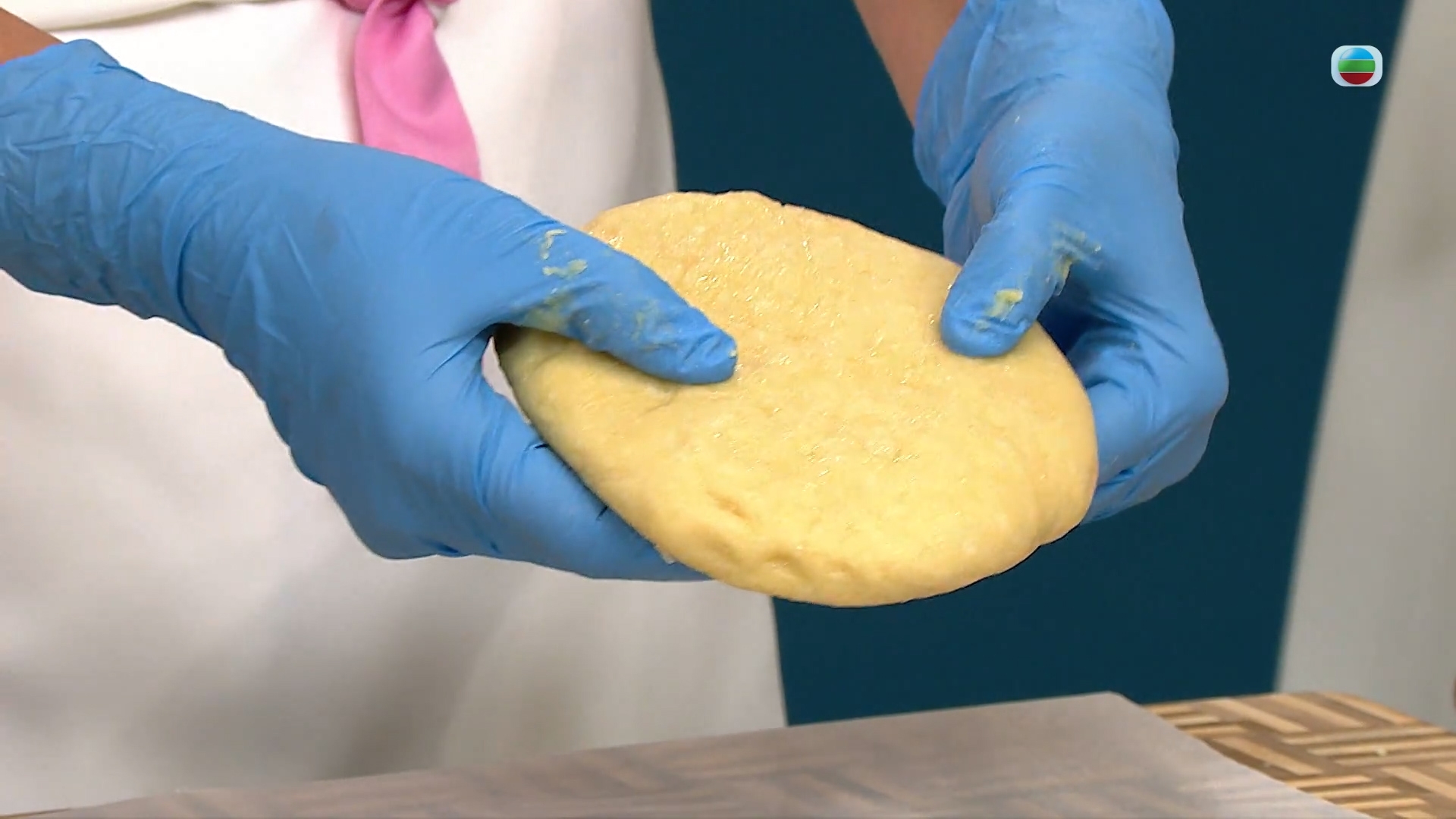 撻皮以麵粉混合牛油和水搓成,趁軟身將其拍扁,然後保鮮紙包好放進雪櫃凍硬,以能輕輕留下指印為準。