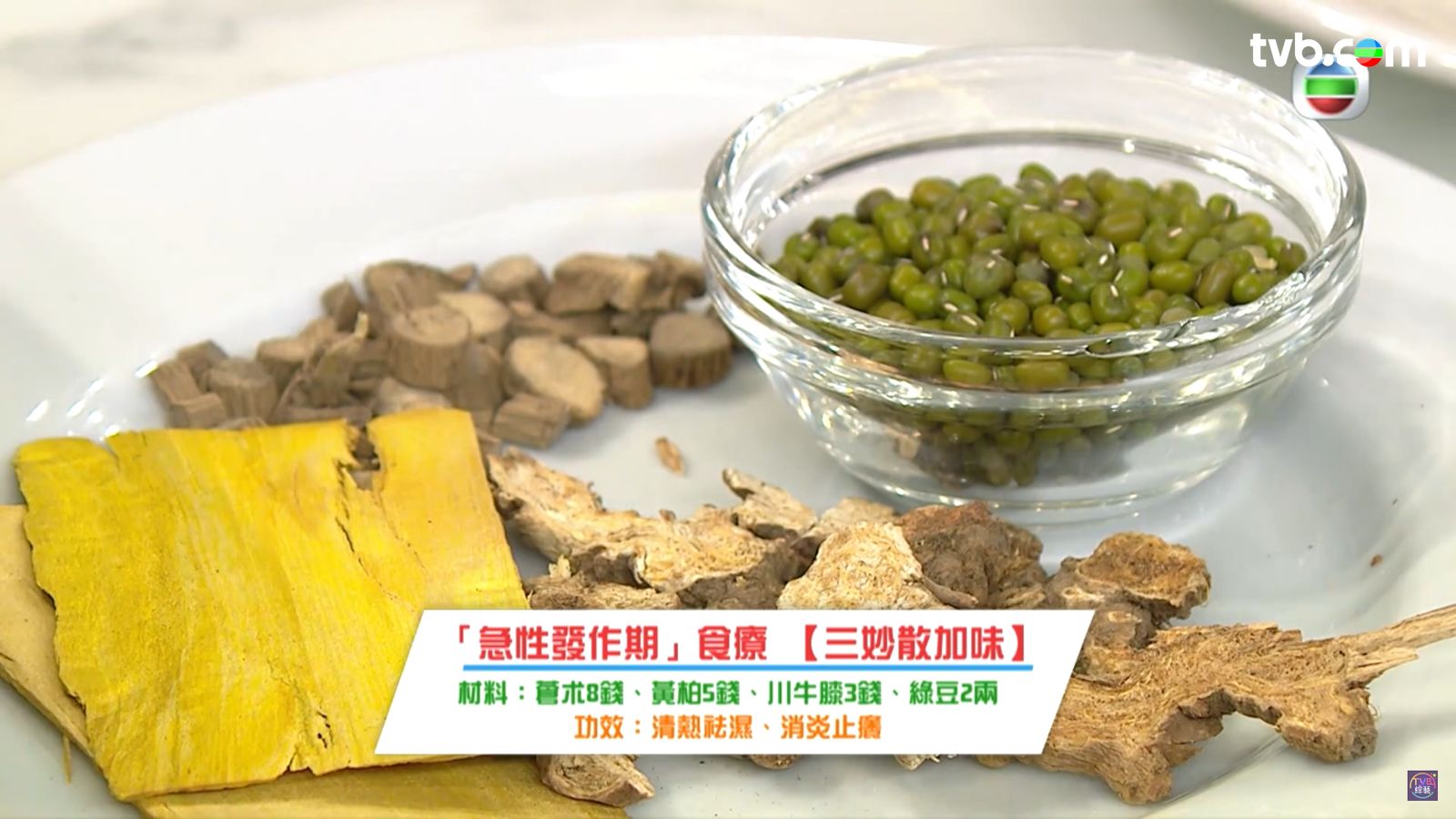 彭醫師介紹,急性發作期食療可以選擇「三妙散加味」,孕婦忌用: