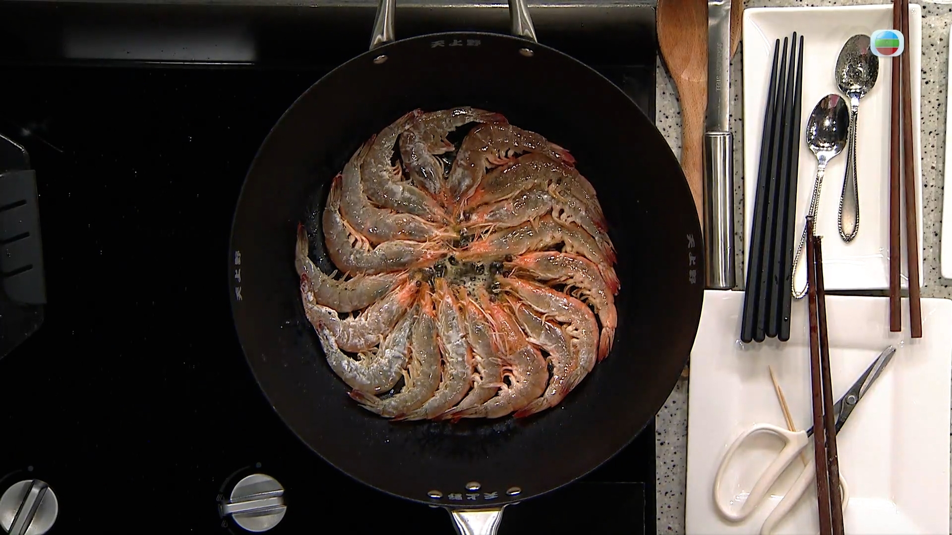 蝦的品種不限,新鮮即可,剪腳挑腸後沖洗乾淨然後抹乾水,再用鹽醃一會之後就可以拿去煎了。撲上一層薄薄的生粉之後中猛火煎至八成熟撈出備用,煎蝦的油記得別倒掉。