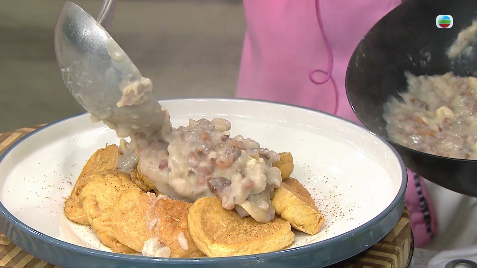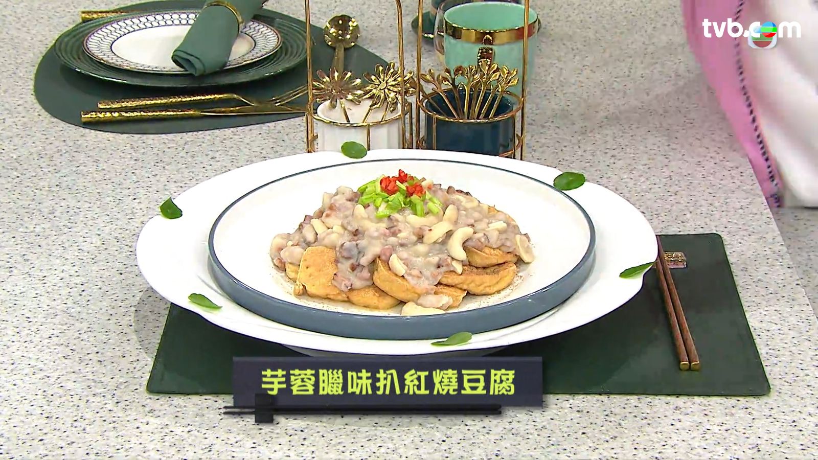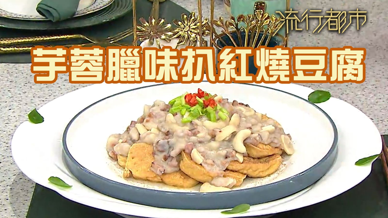 流行都市|時令菜式 芋蓉臘味扒紅燒豆腐|三姐|流行都市點讚分享撰文:車厘茄 發佈日期:2025-12-10 03:14 【豆腐食譜】芋蓉臘味扒紅燒豆腐做法:1.布包豆腐下油鍋炸香,取出置碟,撒上椒鹽,備用。 2.芋頭一半切粒,一半壓成蓉。 3.將臘味粒下油鍋爆香,倒去多餘油分,下清水、芋粒、芋蓉、腰果粒,煮成芋頭臘味蓉,拌入鹽、砂糖、淡奶,注入生粉水埋芡,盛起淋上豆腐面,即成。【豆腐食譜】芋蓉臘味扒紅燒豆腐今集《流行都市》「睇餸食飯」環節,三姐示範「芋蓉臘味扒紅燒豆腐」#流行都市#三姐