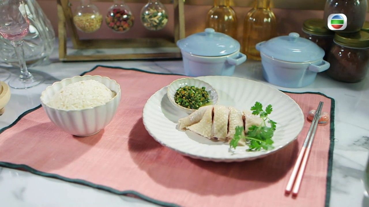 蕭秀香(三姐)、江美儀(美儀)主持的《女人必學100道菜》中,美儀曾教煮海南雞飯,做法雖然簡單,但相當好吃,雞肉十分嫩滑!另外,她更用了一方法令雞皮更爽口,一齊學學!
