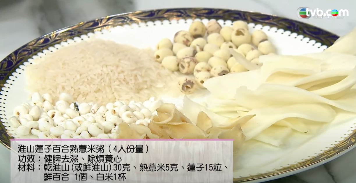 何慧欣中醫師建議可以煮淮山蓮子百合熟薏米粥,這道消暑食療適合早上食用,可以做到健脾去濕、除煩養心的功效。