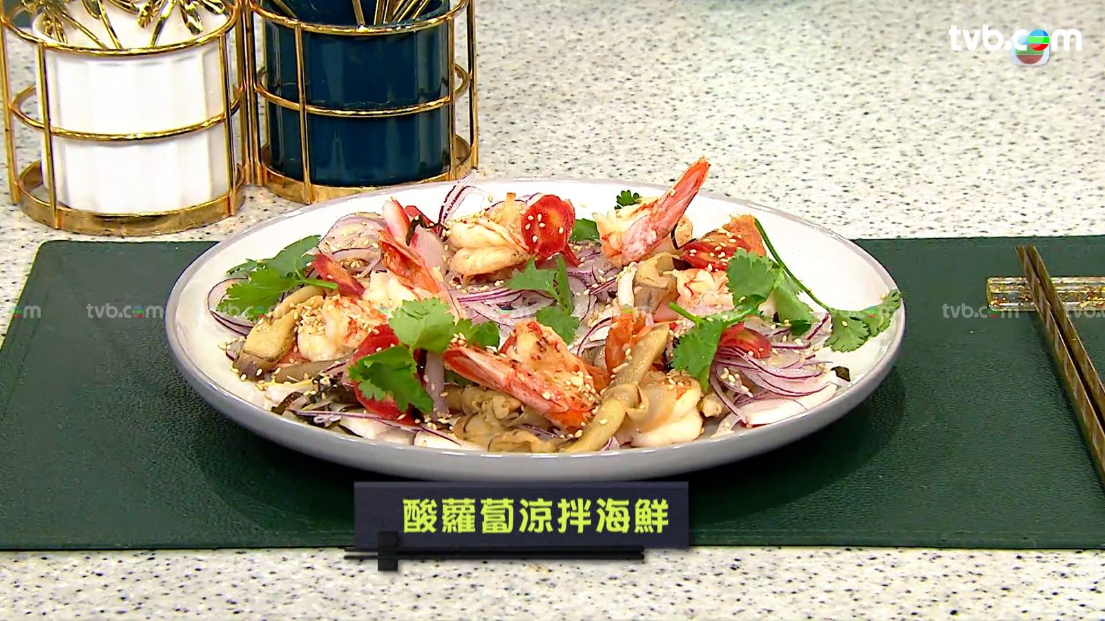 今集《流行都市》「睇餸食飯」環節有 Leslie陳國賓 教大家做「酸蘿蔔涼拌海鮮」。 ![]()