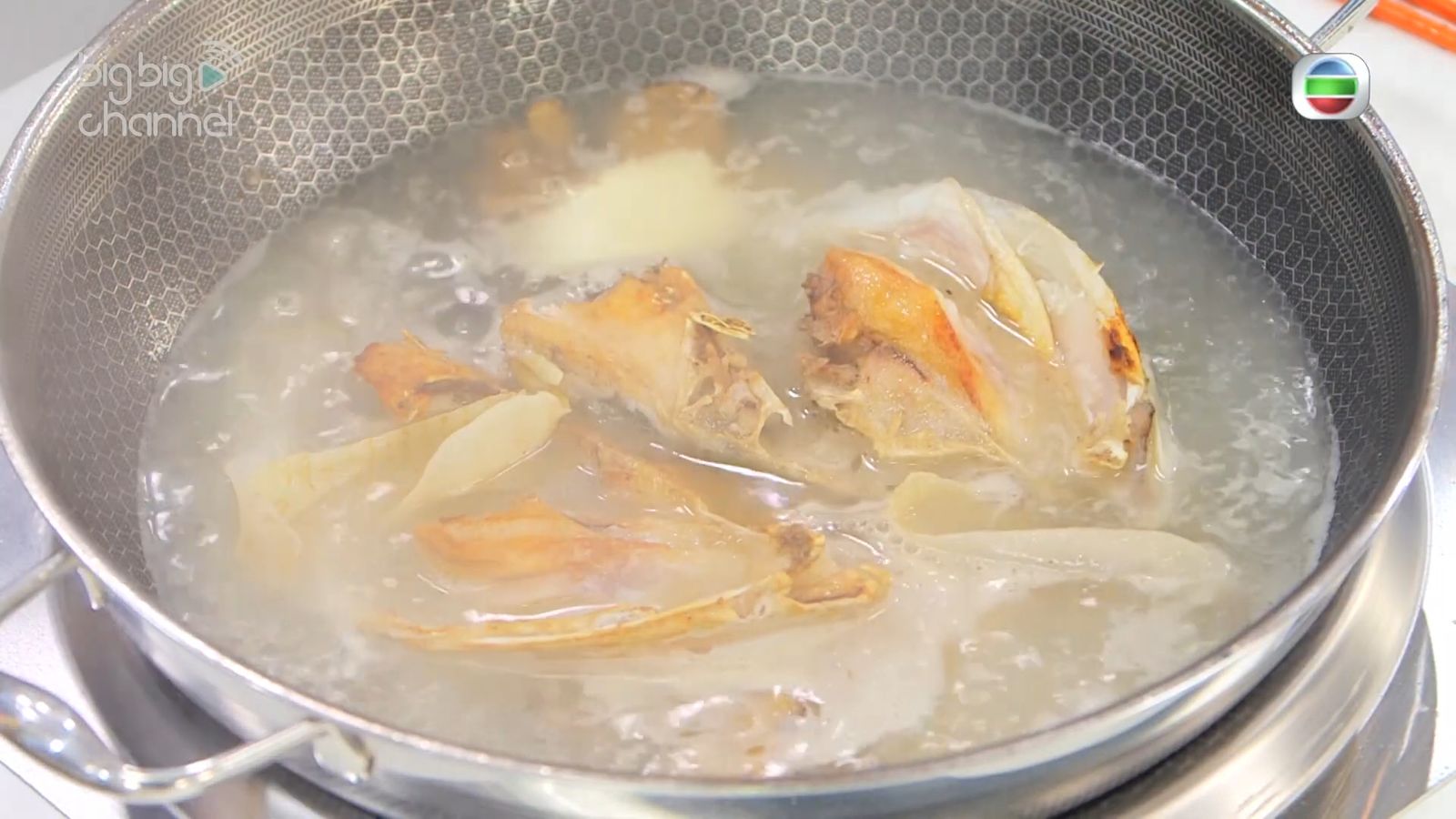 - 大魚頭煎到金黃色後,加入熱水、南棗、天麻、川芎、白芷,以及加入少量紹酒,蓋上煲20分鐘。