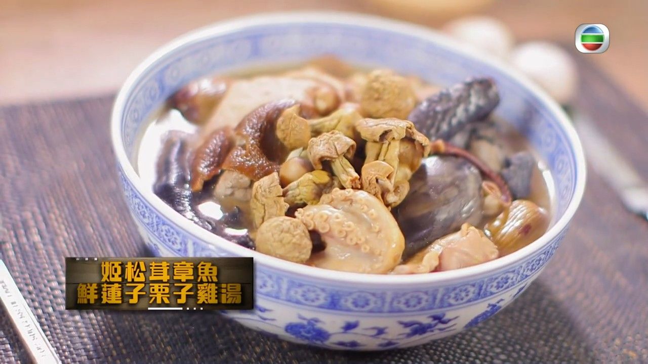 湯水食譜|天氣冷又乾,想飲一些湯水滋潤一下?肥媽教主持的《健康食平D》中,曾教煲姬松茸章魚鮮蓮子栗子雞湯,這款湯水可以補腎潤肺,做法簡單,試試吧!