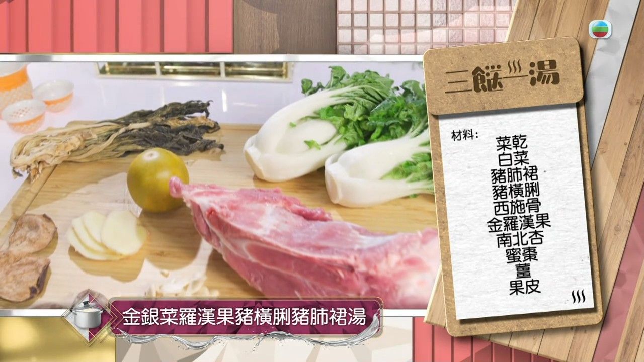 想潤肺又養顏?不如試一試「金銀菜羅漢果豬橫脷豬肺裙湯」!三姐在《三餸一湯》中教煲這款湯,雖然準備的材料較多,但飲落清甜,十分好喝!