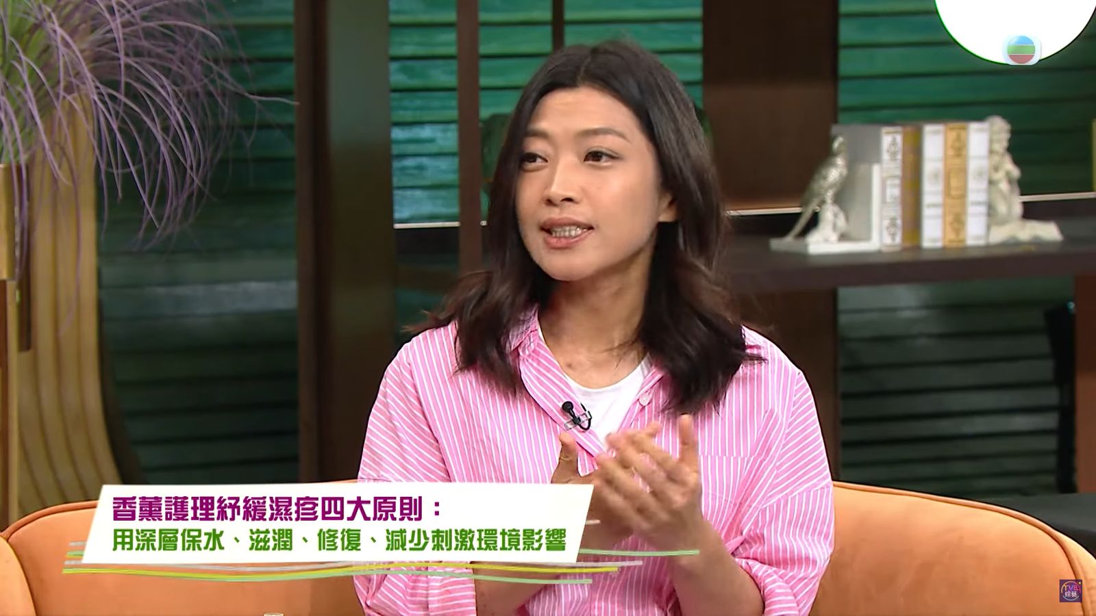 天氣炎熱,皮膚更容易失去水分,濕疹患者要提高警惕!原來香薰都可以治療濕疹?TVB節目《流行都市》邀請來英國認證臨床香薰治療師Kerry CHAN上來為大家講解以香薰舒緩濕疹的經驗,並講解如何選擇沖涼液,以及以基底油塗抹身體進行護膚。