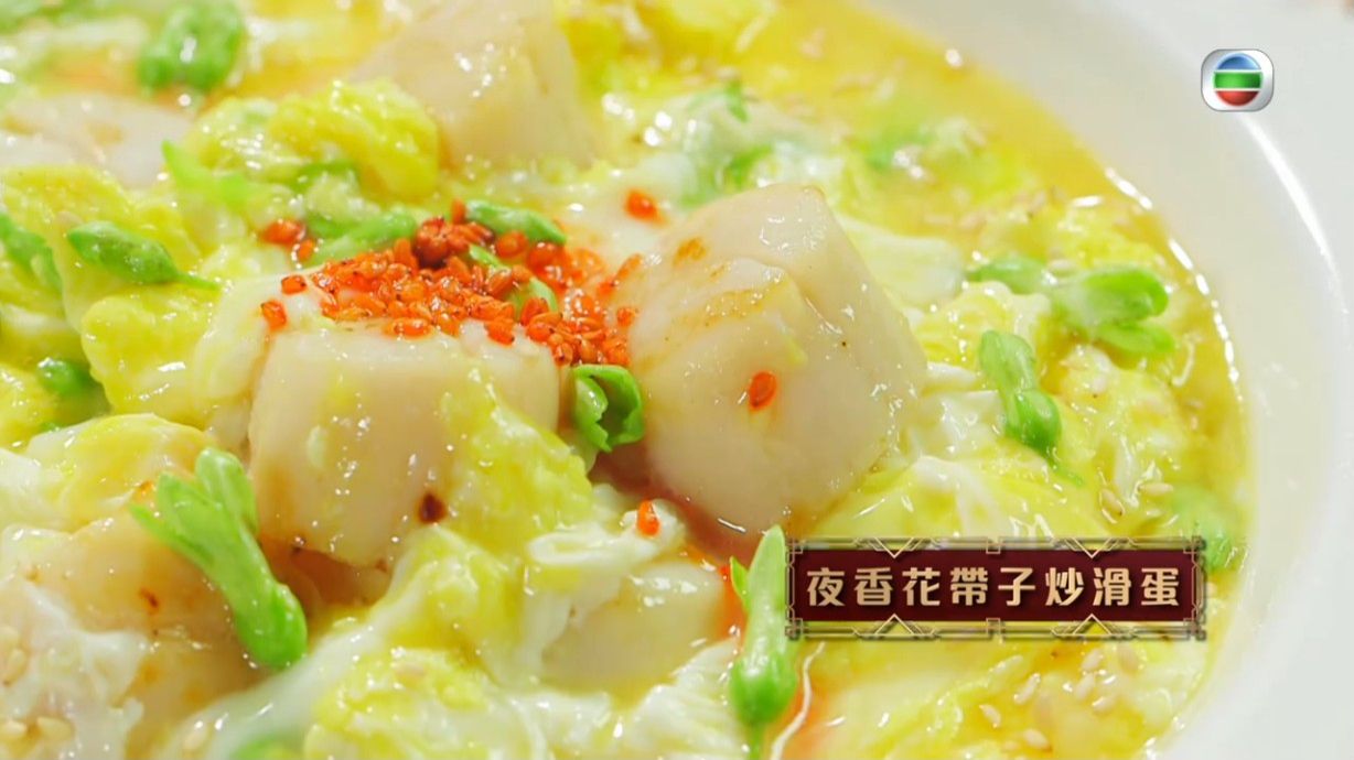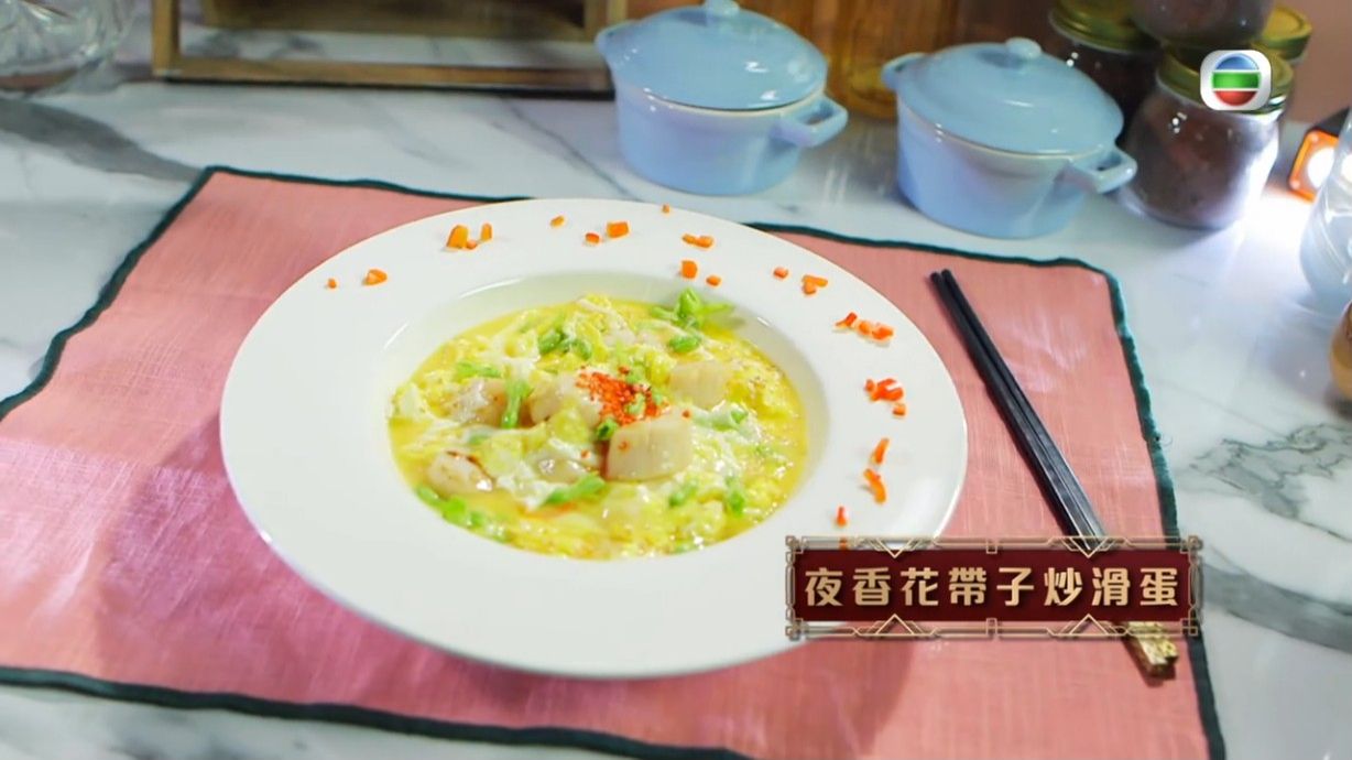 炒蛋食譜|炒蛋想整得又香滑?蕭秀香(三姐)、江美儀(美儀)主持的《女人必學100道菜》中,曾教整夜香花帶子炒滑蛋,炒出來的滑蛋配合了夜香花、帶子,口感很豐富!