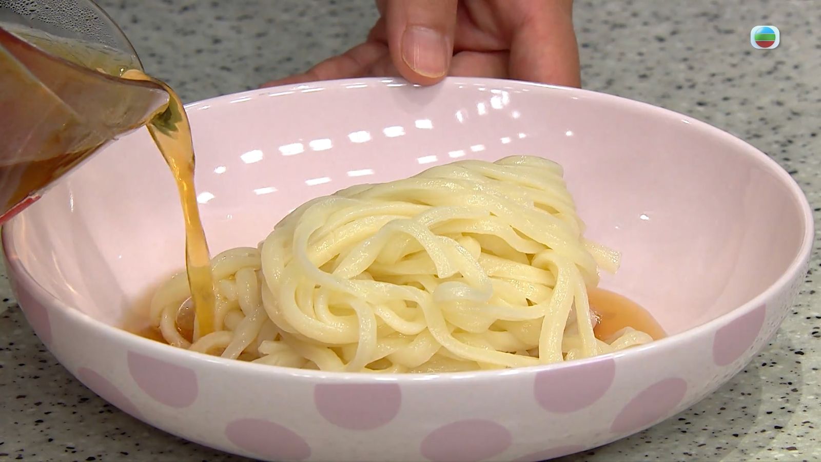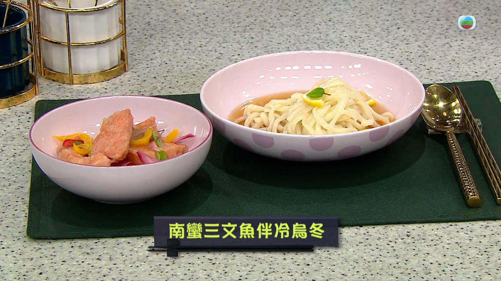 今集《流行都市》「睇餸食飯」環節有 Margaret傅季馨 教大家做「南蠻三文魚伴冷烏冬」。![]()