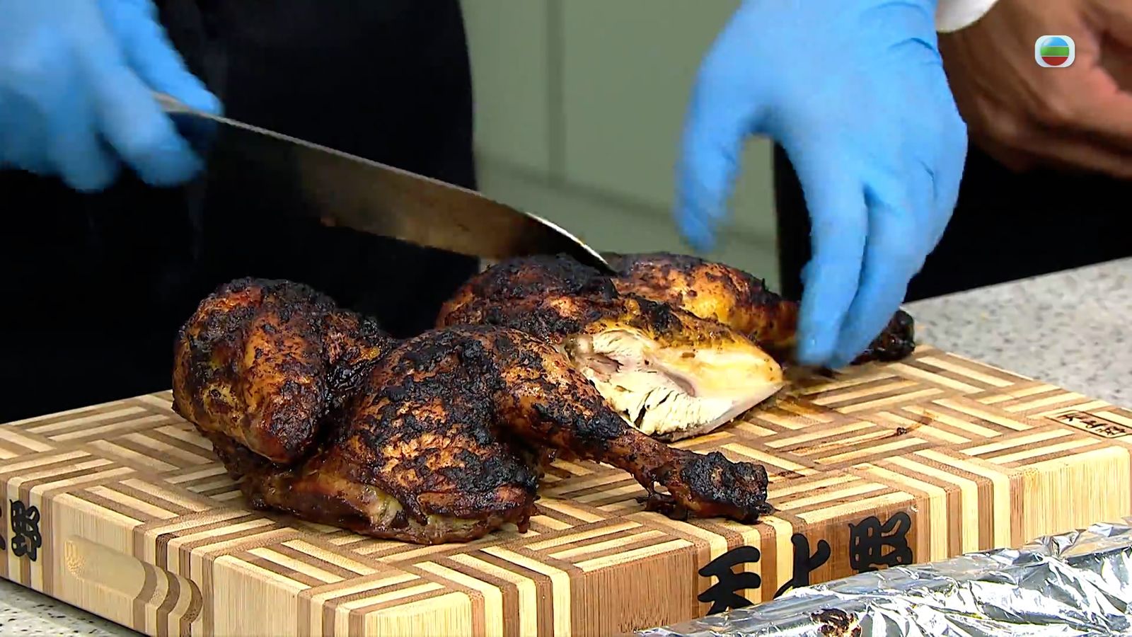 焗爐預熱至攝氏190度,將整雞隻放入焗爐焗45分鐘至熟透,取出切件就可以上菜了。