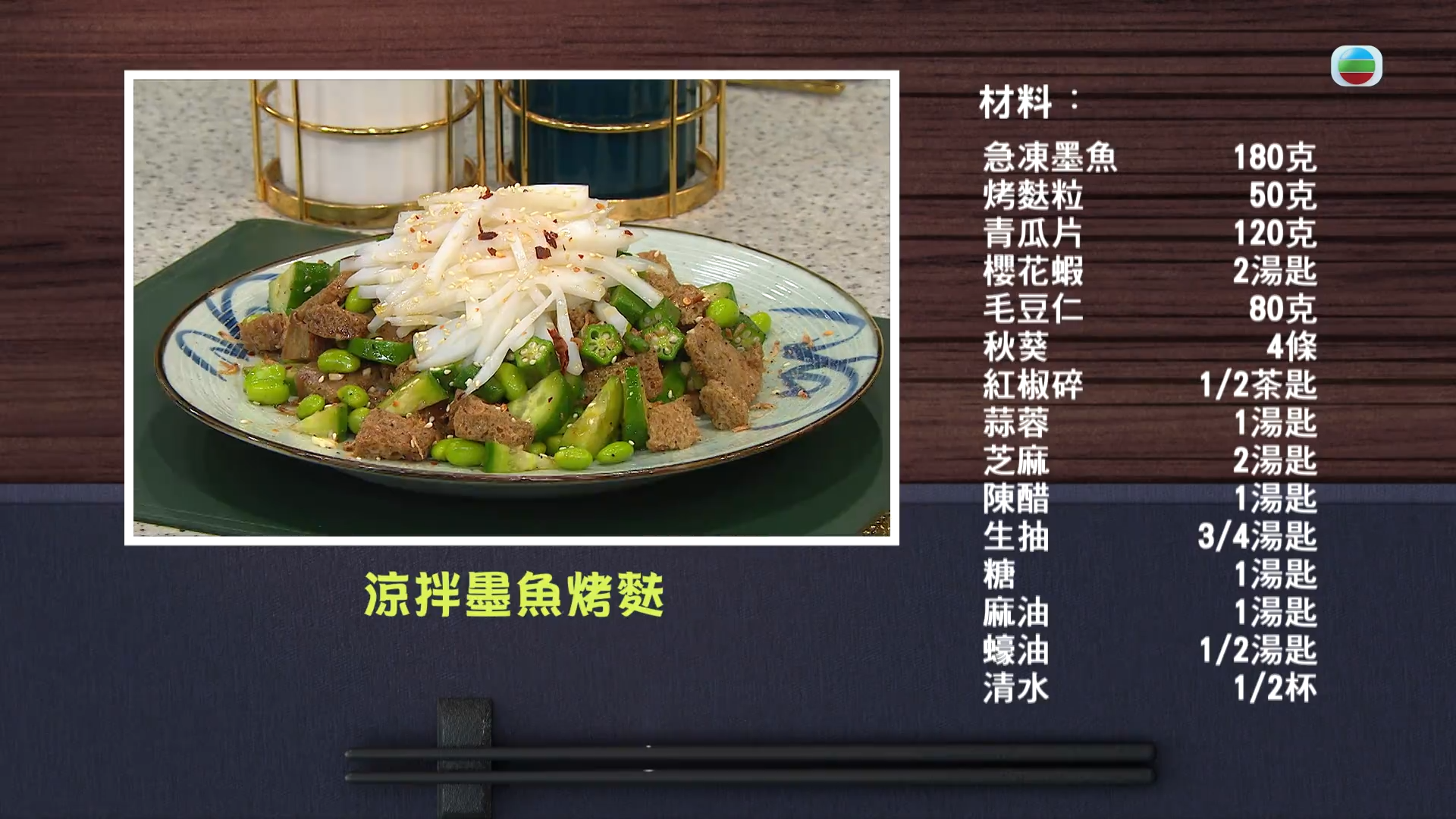 今集《流行都市》「睇餸食飯」環節有 陳國賓 教大家整開胃小菜「涼拌墨魚烤麩」,大家一齊嚟試吓啦!