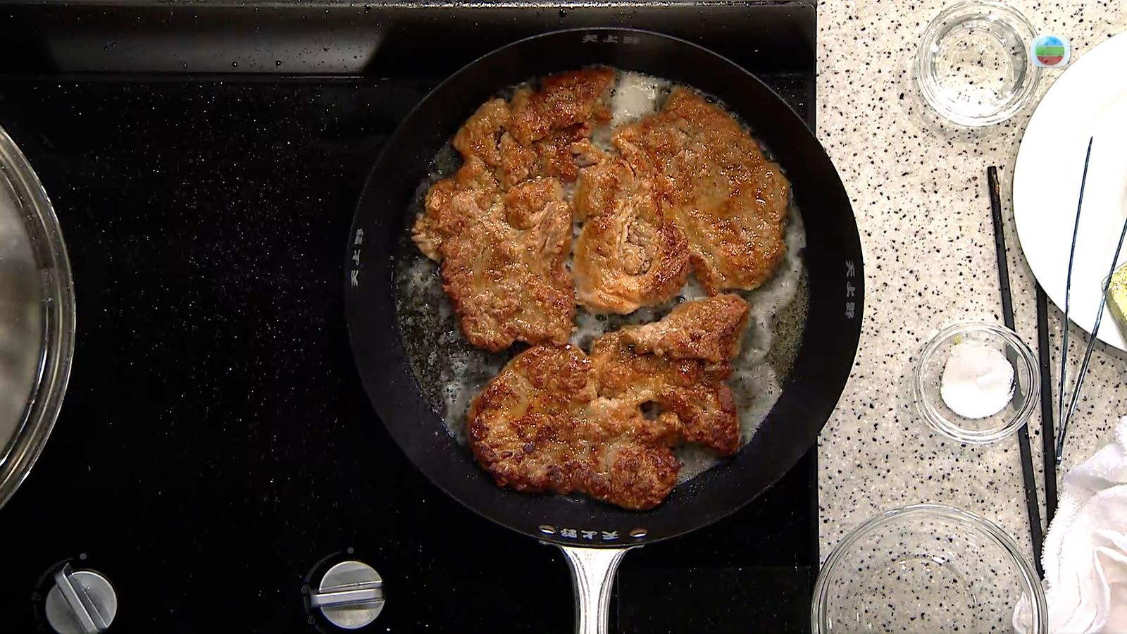 1.用鎚揼鬆豬扒,加上醃料醃約10分鐘,備用。
