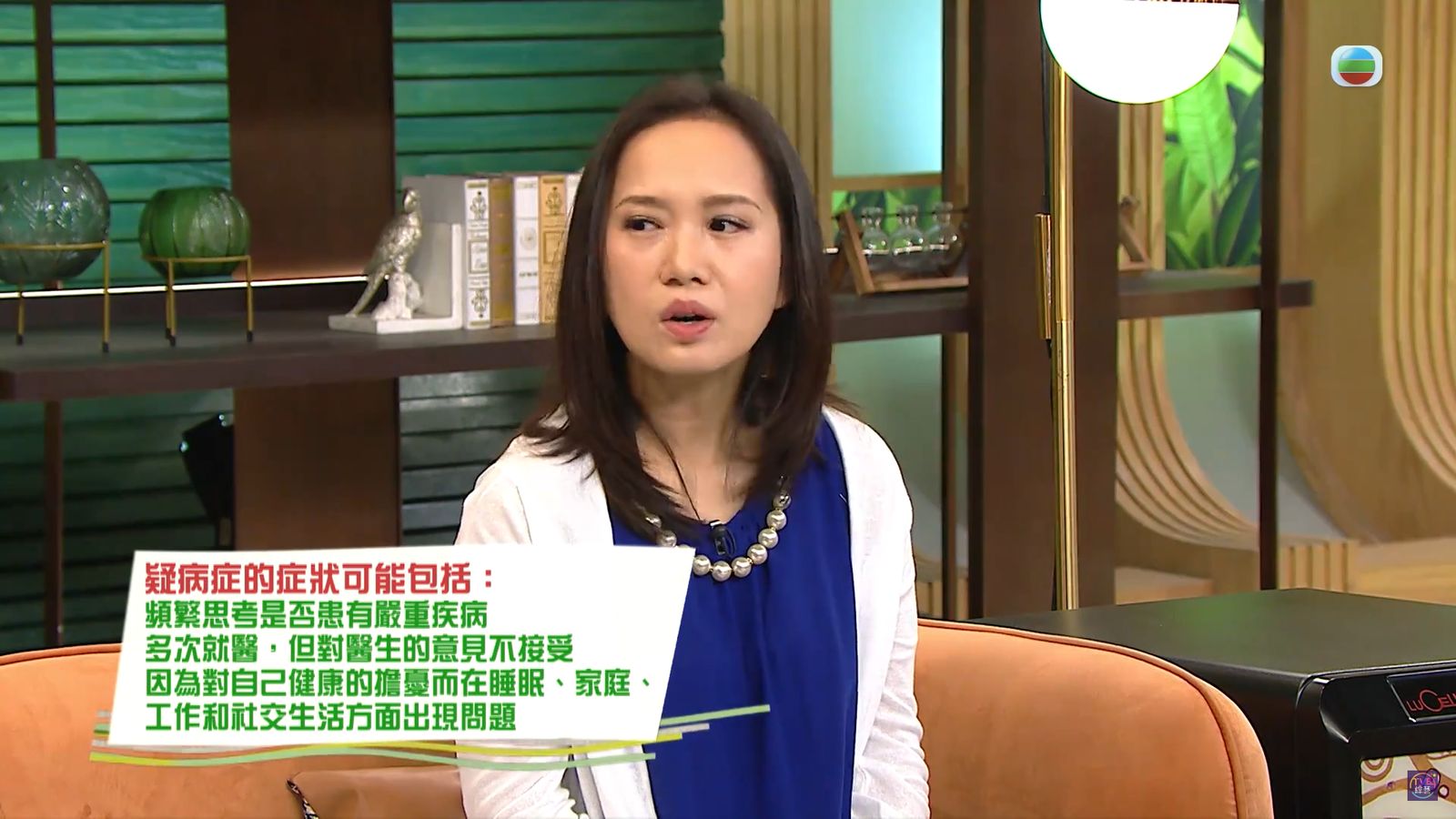 明明身體無恙但覺得自己有病?這種症狀可能是一種叫「疑病症」的焦慮疾病,針對這一問題,TVB節目《流行都市》請來精神科專科醫生黃嘉怡講解疑病症的症狀、成因同影響,並分享治療方法。