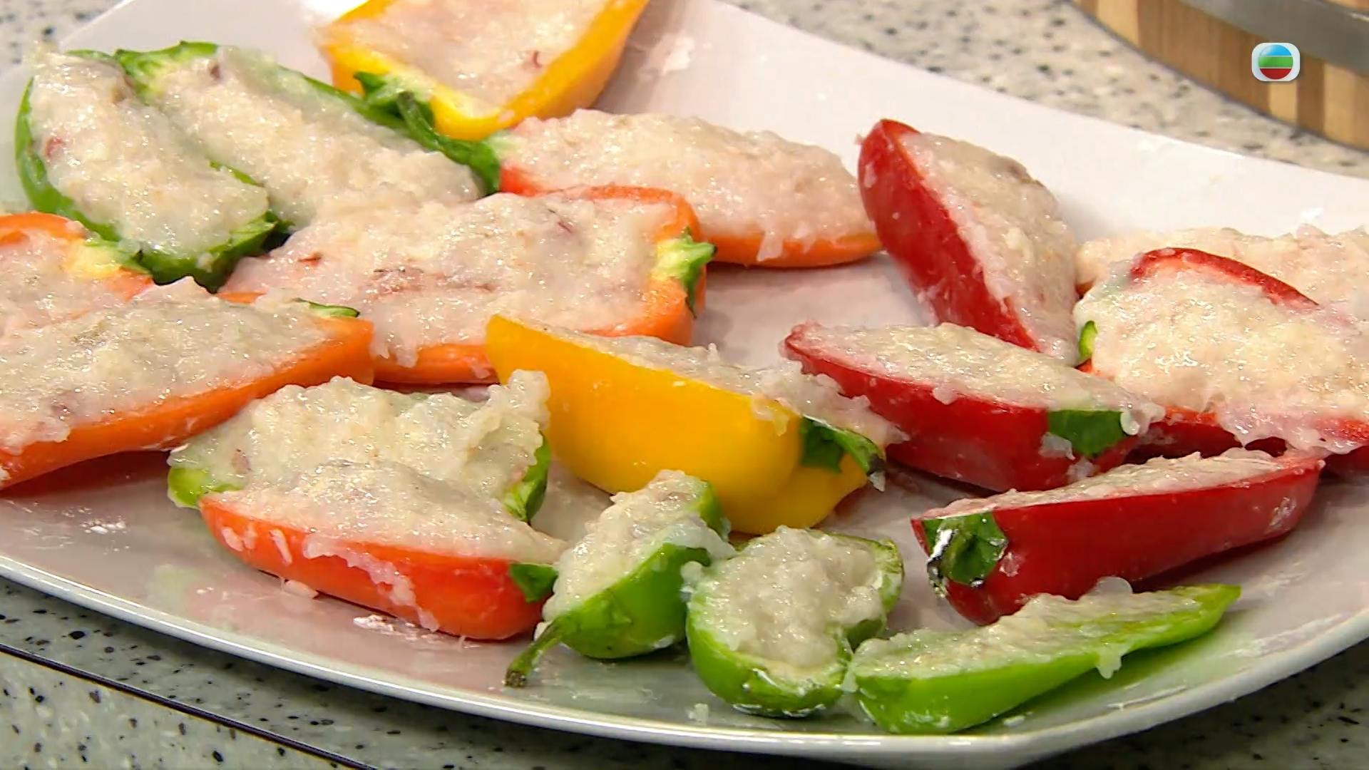 今集《流行都市》「睇餸食飯」環節有 李文星 教大家做「豉油皇百花煎釀三色椒」。