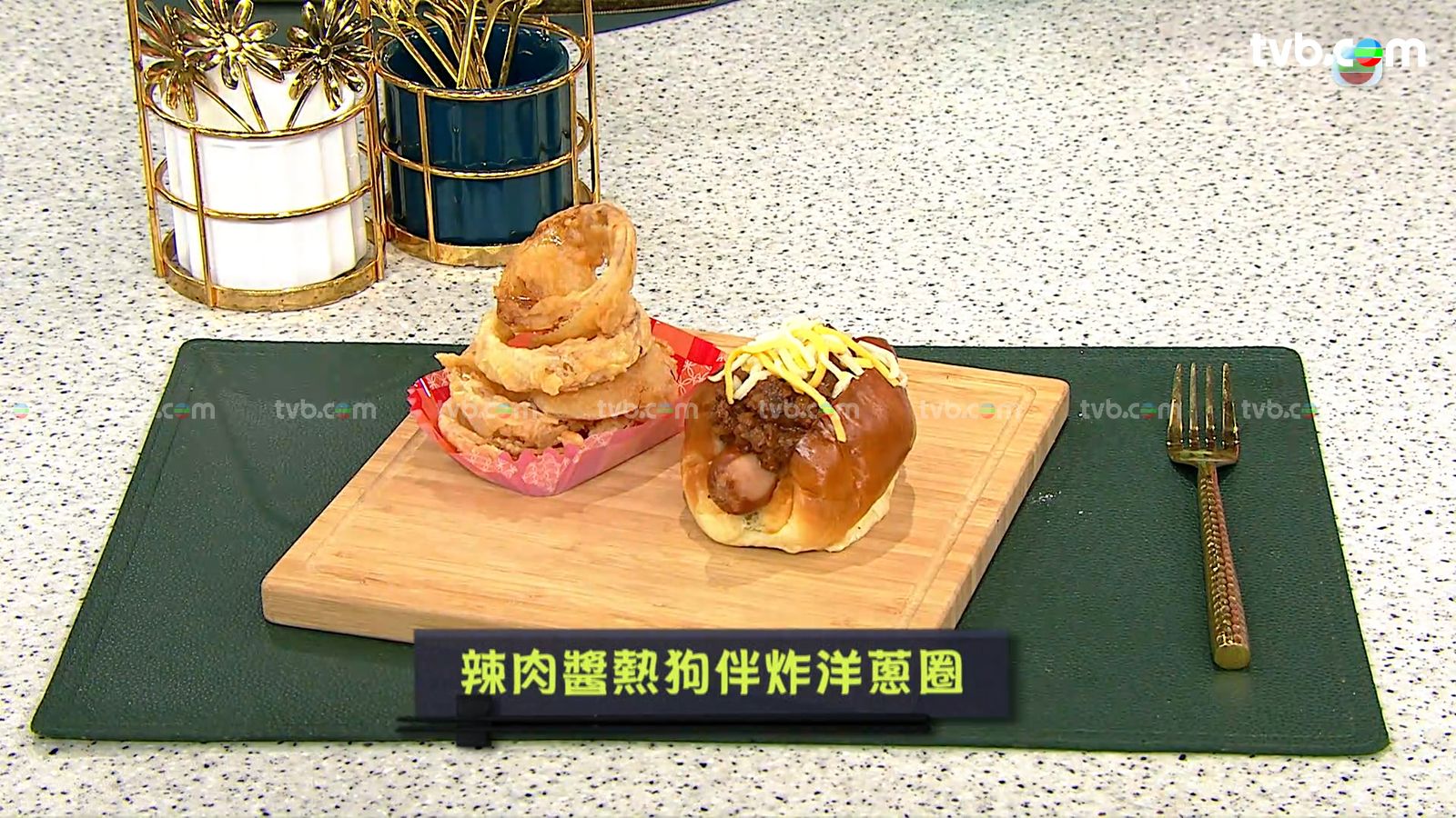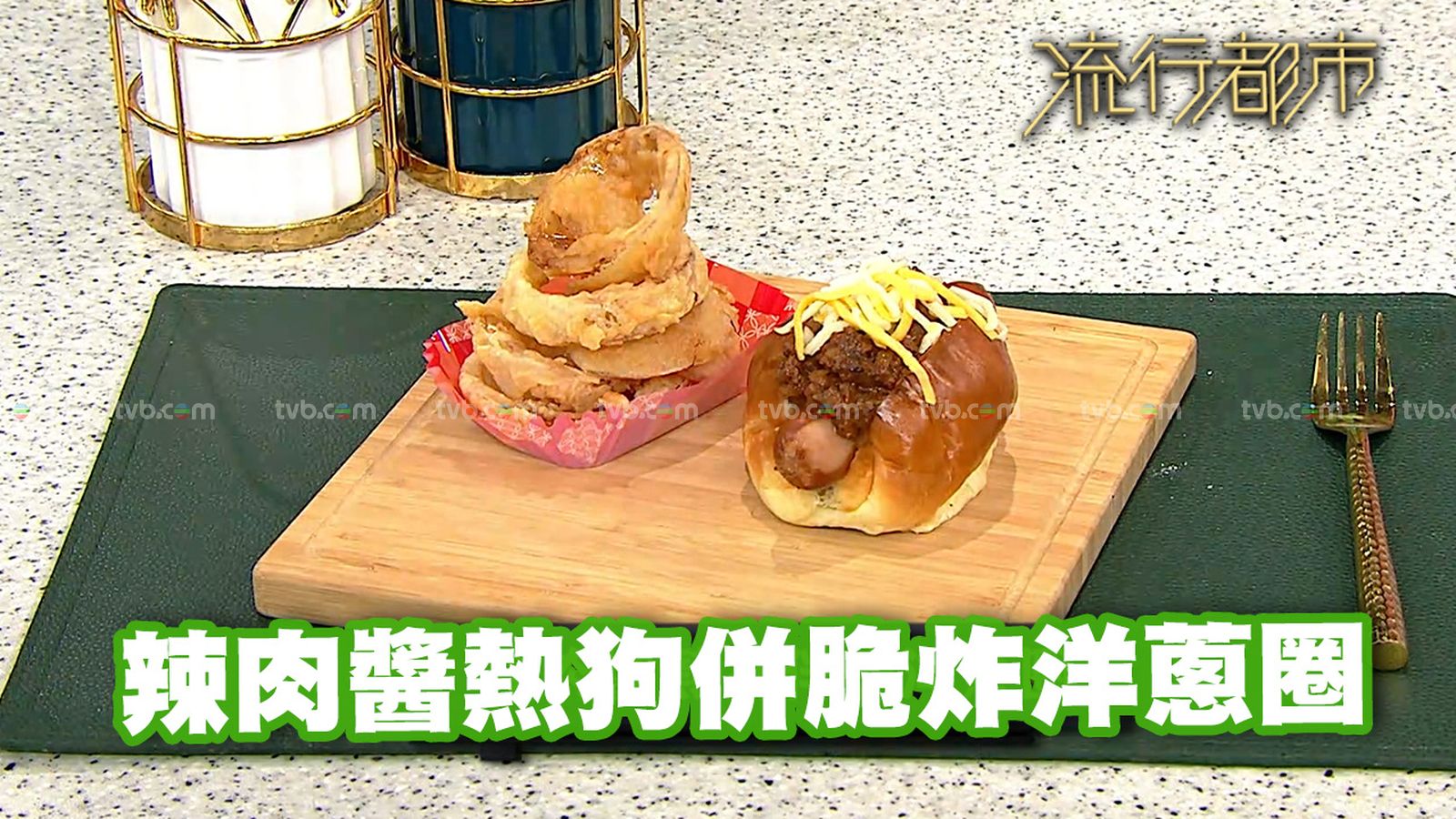 今集《流行都市》「睇餸食飯」環節有 Margaret傅季馨 教大家做「辣肉醬熱狗併脆炸洋蔥圈」。 ![]()