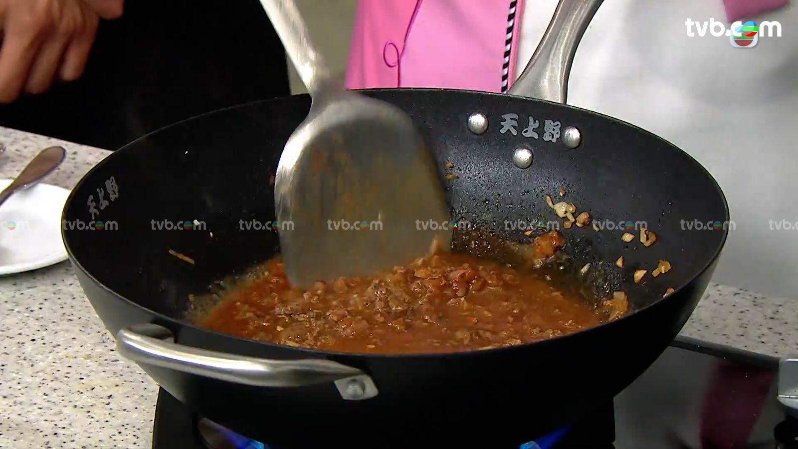 原鍋下洋蔥粒炒至軟身,加入蒜蓉、茄膏炒香後將牛肉回鍋,然後下茄汁、喼汁、辣椒汁、清水,合蓋煮20分鐘,最後加黑胡椒碎、辣椒粉調味便成辣肉醬。