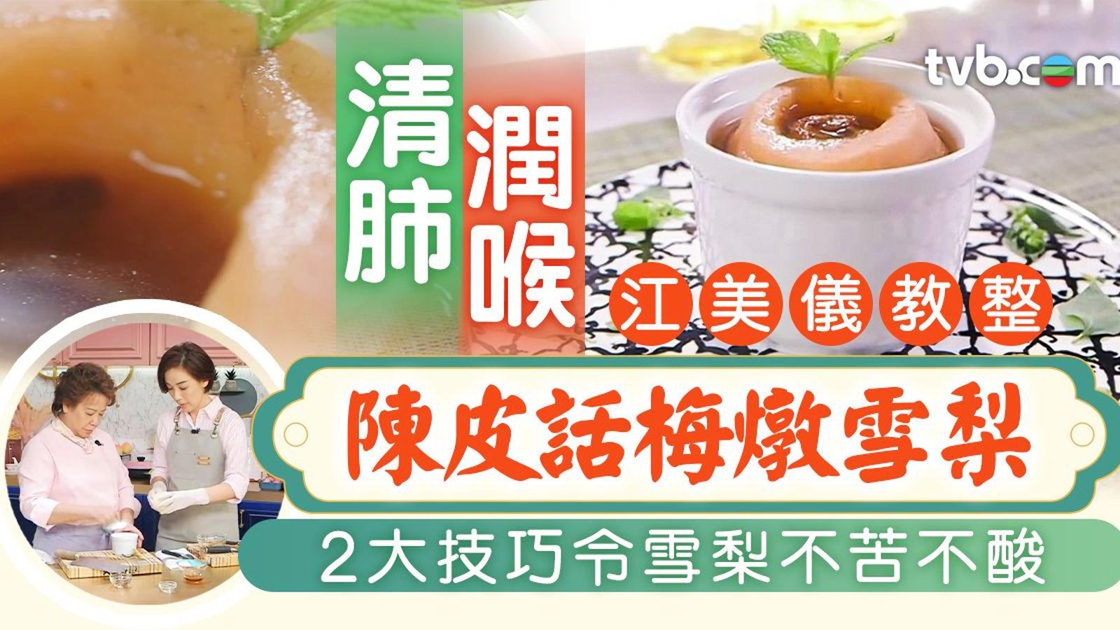 蕭秀香(三姐)、江美儀(美儀)主持的《女人必學100道菜》中,美儀曾教整陳皮話梅燉雪梨,做法很簡單,但原來不想燉出來的甜品又酸又苦,有一些注意事項的!