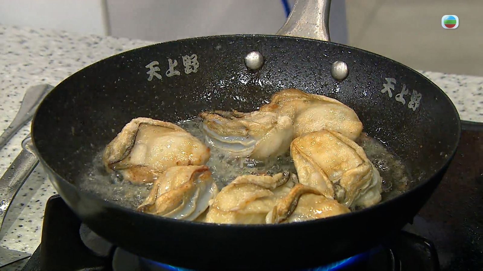 6.蠔拍上生粉,放入油鍋煎香,取出備用。