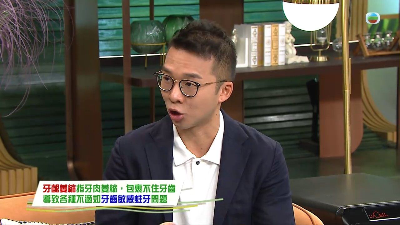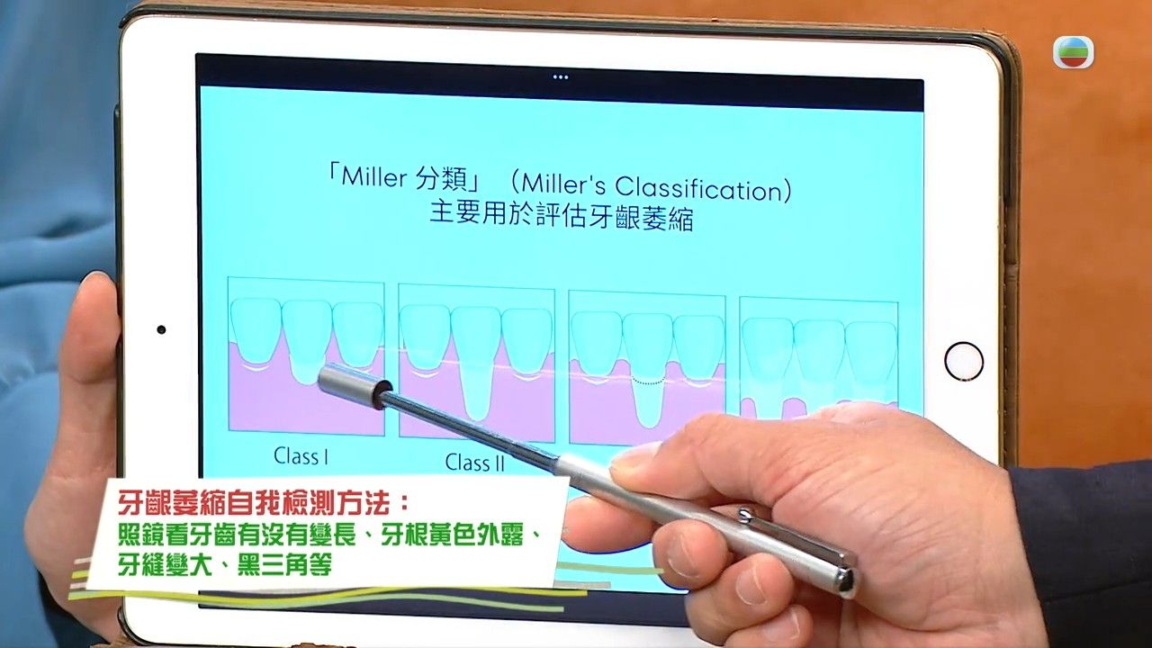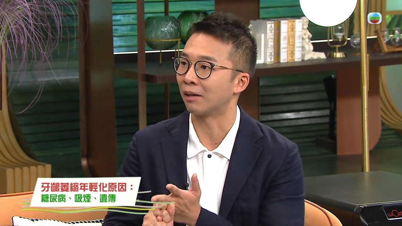 牙齦萎縮據近年呈現年輕化趨勢,原來除了牙周病、糖尿病等病理因素外,不當使用電動牙刷亦可能導致此症。TVB節目《流行都市》邀請到牙醫陳澔賢,替大家講解如何透過觀察自我檢測牙齒狀況,帶來刷牙注意事項;醫生亦提醒,牙齦一旦萎縮就不可逆轉,因此定期洗牙、使用牙線都是預防牙齦萎縮的關鍵。