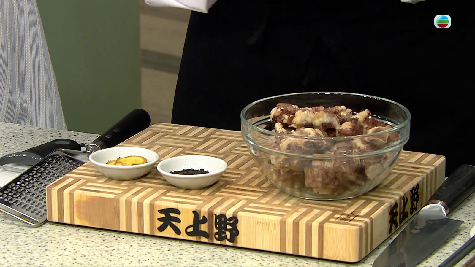 醬料:牛尾上湯 600毫升,醬油 90毫升,黃糖 2湯匙,味醂 2湯匙,清酒 3湯匙,麻油 1湯匙,洋蔥 半個,薑蓉 1湯匙,蒜蓉 1湯匙,秋月梨 半個,黑胡椒碎 1茶匙,二荊條乾辣椒 1隻