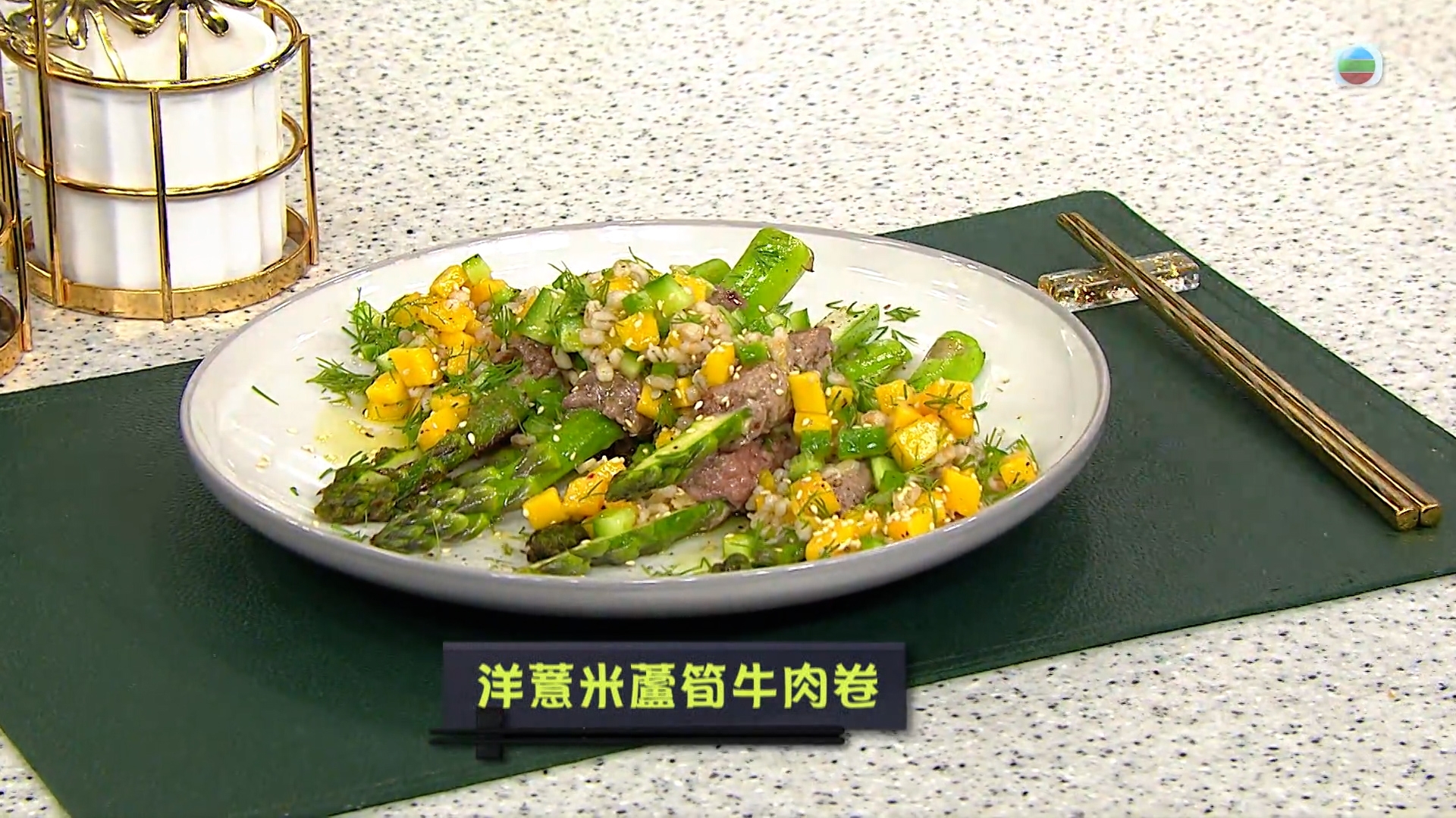 今集《流行都市》「睇餸食飯」環節有 Leslie陳國賓 教大家做「洋薏米蘆筍牛肉卷」。