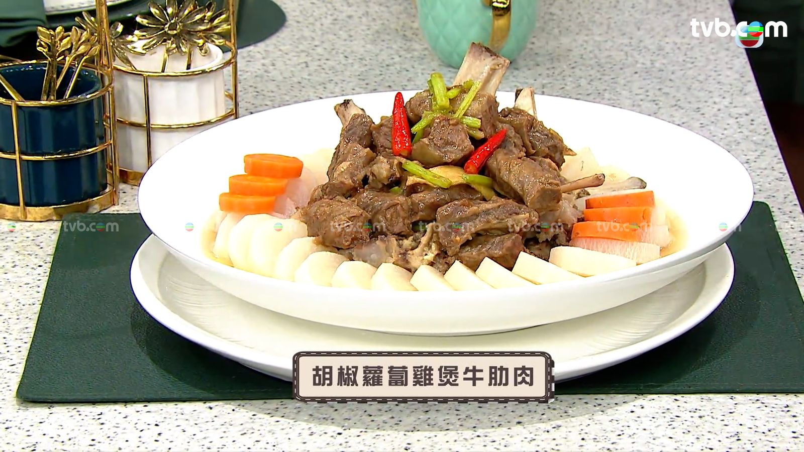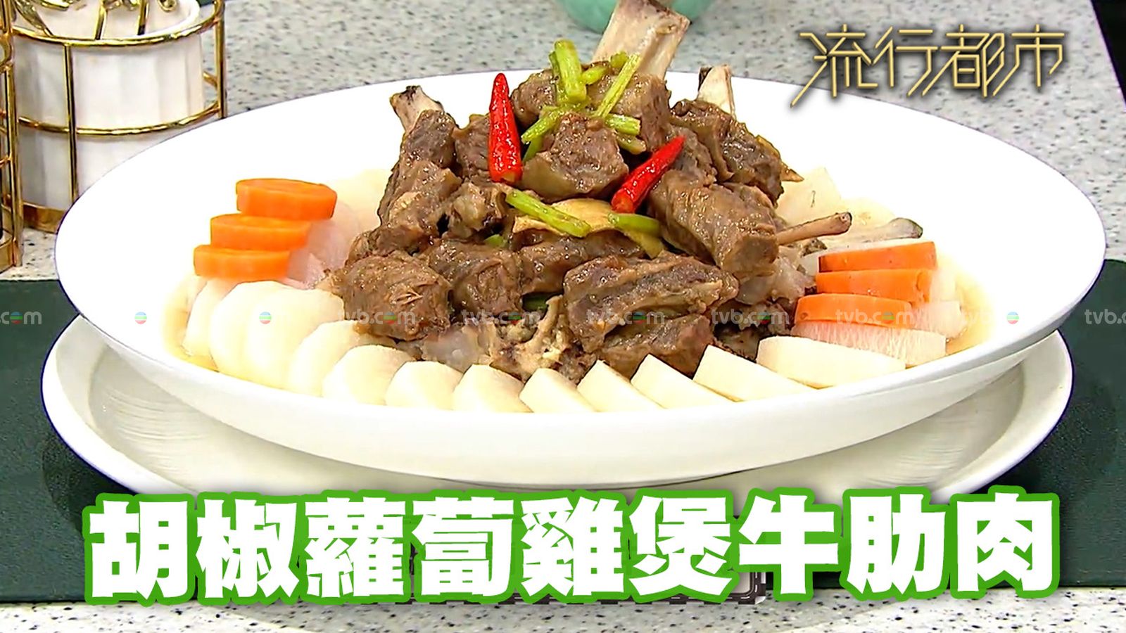 今集《流行都市》「睇餸食飯」環節有 三姐蕭秀香 教大家做「胡椒蘿蔔雞煲牛肋肉」。