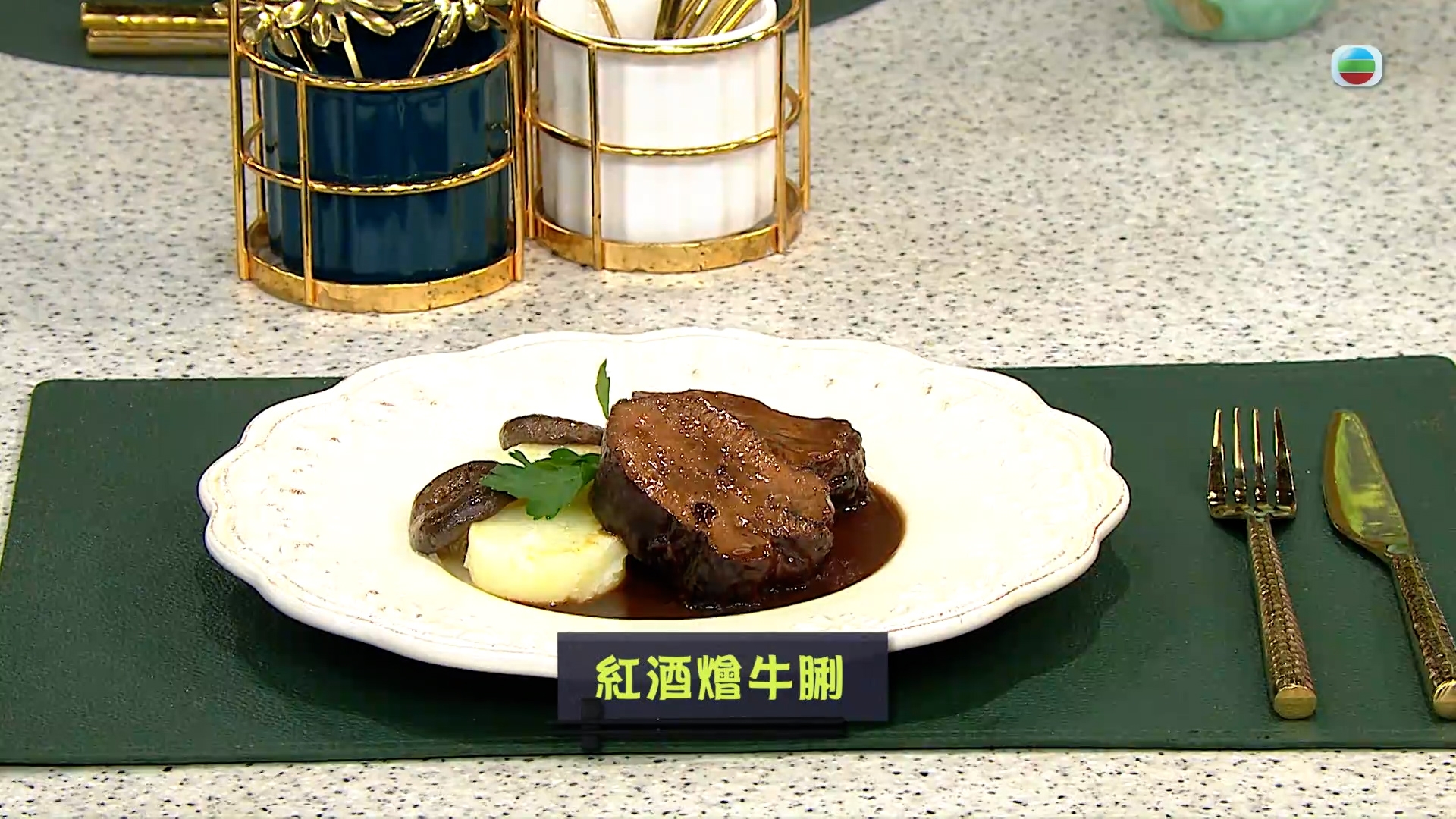 今集《流行都市》「睇餸食飯」環節就有 Margaret傅季馨 教大家煮經典西餐「紅酒燴牛脷」。