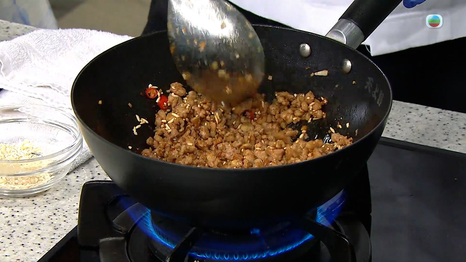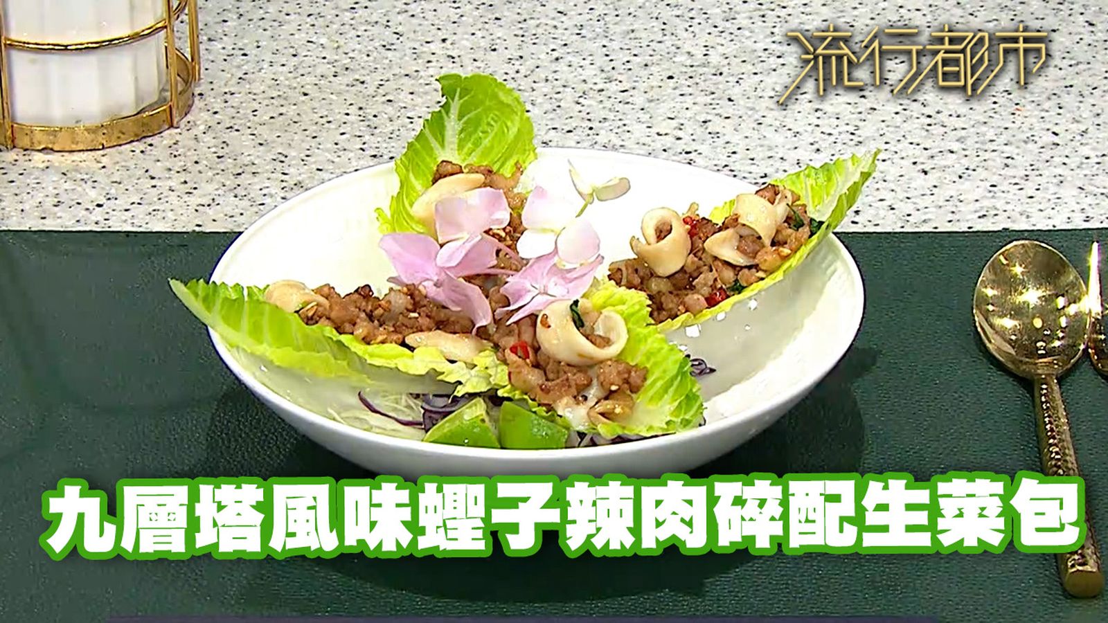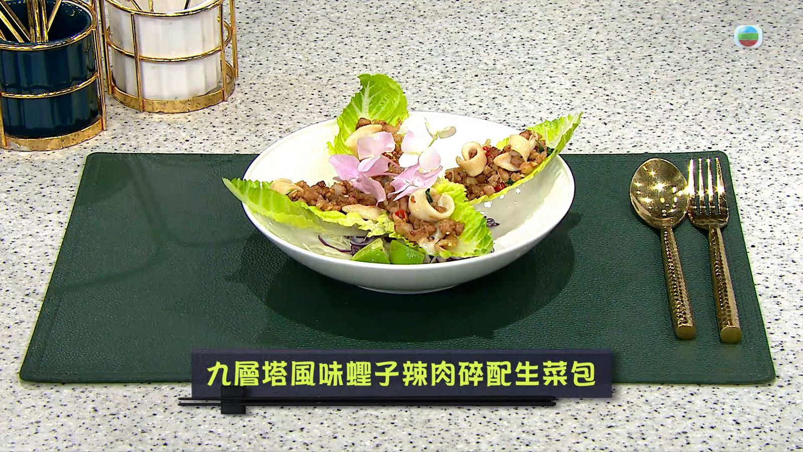 今集《流行都市》「睇餸食飯」環節有 Bosco李家鋌 教大家做「九層塔風味蟶子辣肉碎配生菜包」。![]()