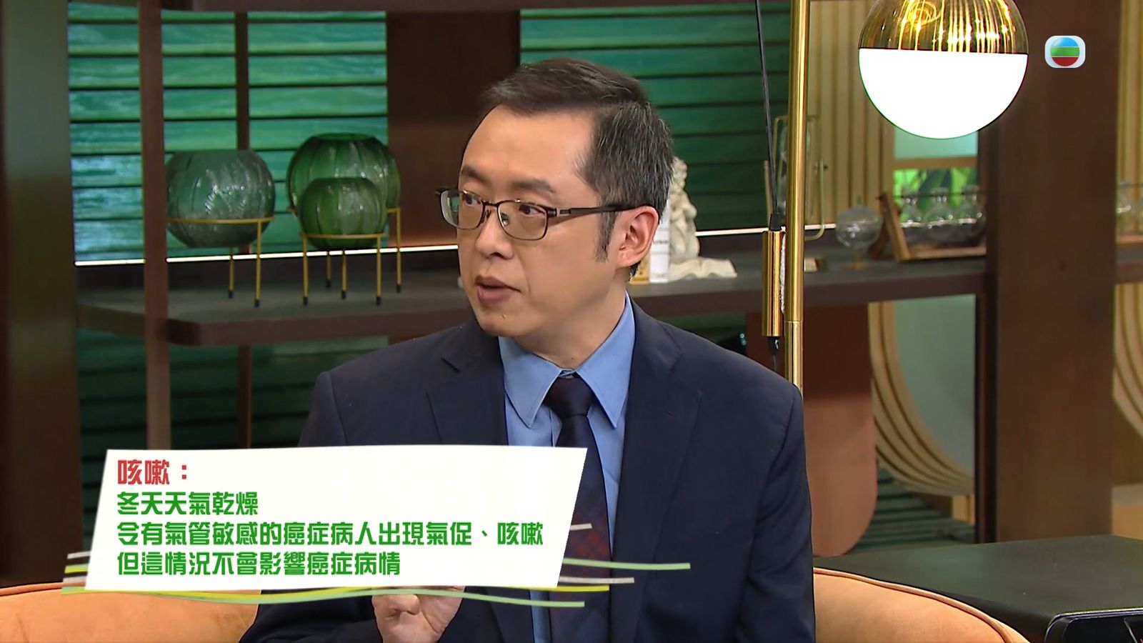 冬天天氣乾燥,令有氣管敏感的癌症病人出現氣促、咳嗽,但這情況不會影響癌症病情。