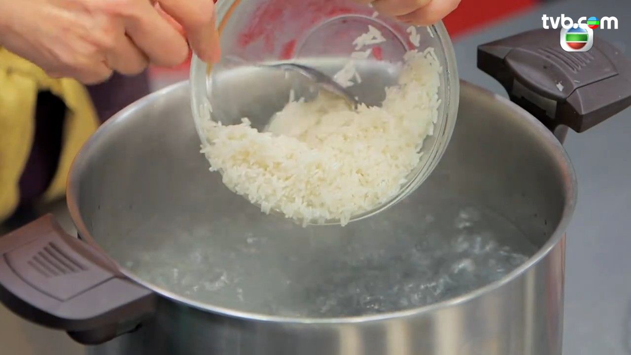 - 水滾放入米,煮粥底約1小時,把米煮至開花