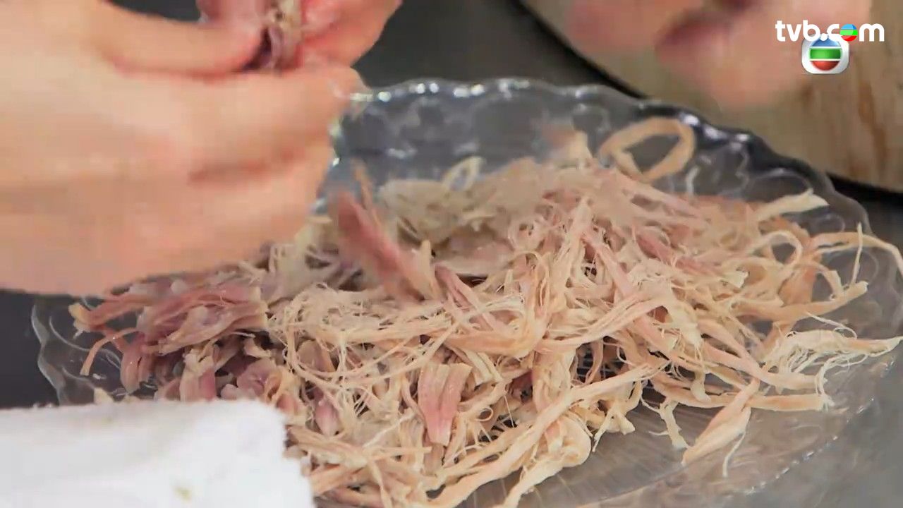 - 把鹹瘦肉撈出,放涼後可以撕成絲