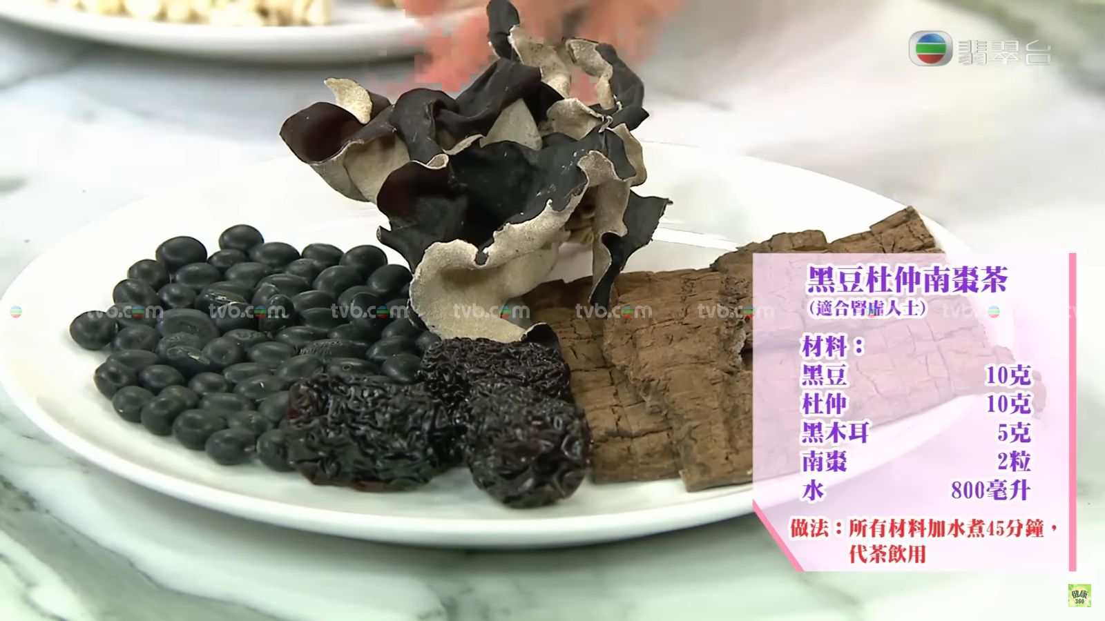材料:黑豆 10克、杜仲 10克、黑木耳 5克、南棗 2粒、水 800毫升