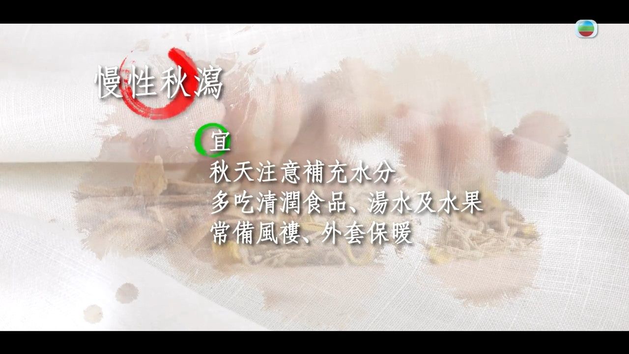 秋天湯水|到了9月最後幾天,開始感到涼意,氣溫也慢慢下降。如果你適應不了天氣,有可能出現腹瀉情況。TVB的《四時養生》曾講到慢性秋瀉的情況,如果想轉季減少腹瀉,可以煲甚麼湯水呢?又有甚麼宜忌?