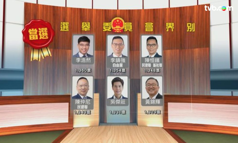 16名當選新人中,得票最多的是城大校董會主席魏明德,有1,345票。加入的「新血」還有廠商會副會長莊家彬,立法會前主席范徐麗泰兒子、全國政協委員范駿華,港區全國人大代表朱立威,警察隊員佐級協會前主席陳祖光等。