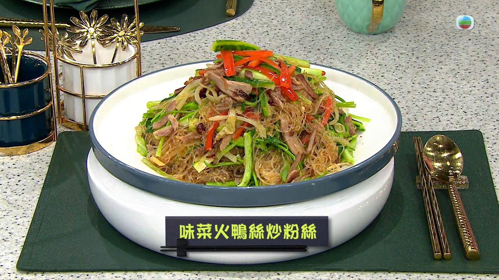 今集《流行都市》「睇餸食飯」環節有 三姐蕭秀香 教大家做「味菜火鴨絲炒粉絲」。![]()