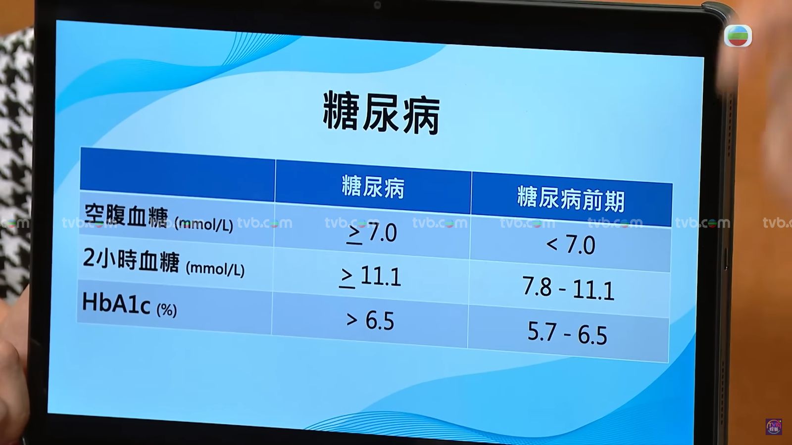 唐醫生建議,如果自己想在家監測血糖指數,都需要在檢測空腹以及餐後兩個小時的血糖數值,空腹血糖正常範圍為 6-8度,餐後血糖應維持在 8-10度,若超過該標準則提示血糖控制欠佳。