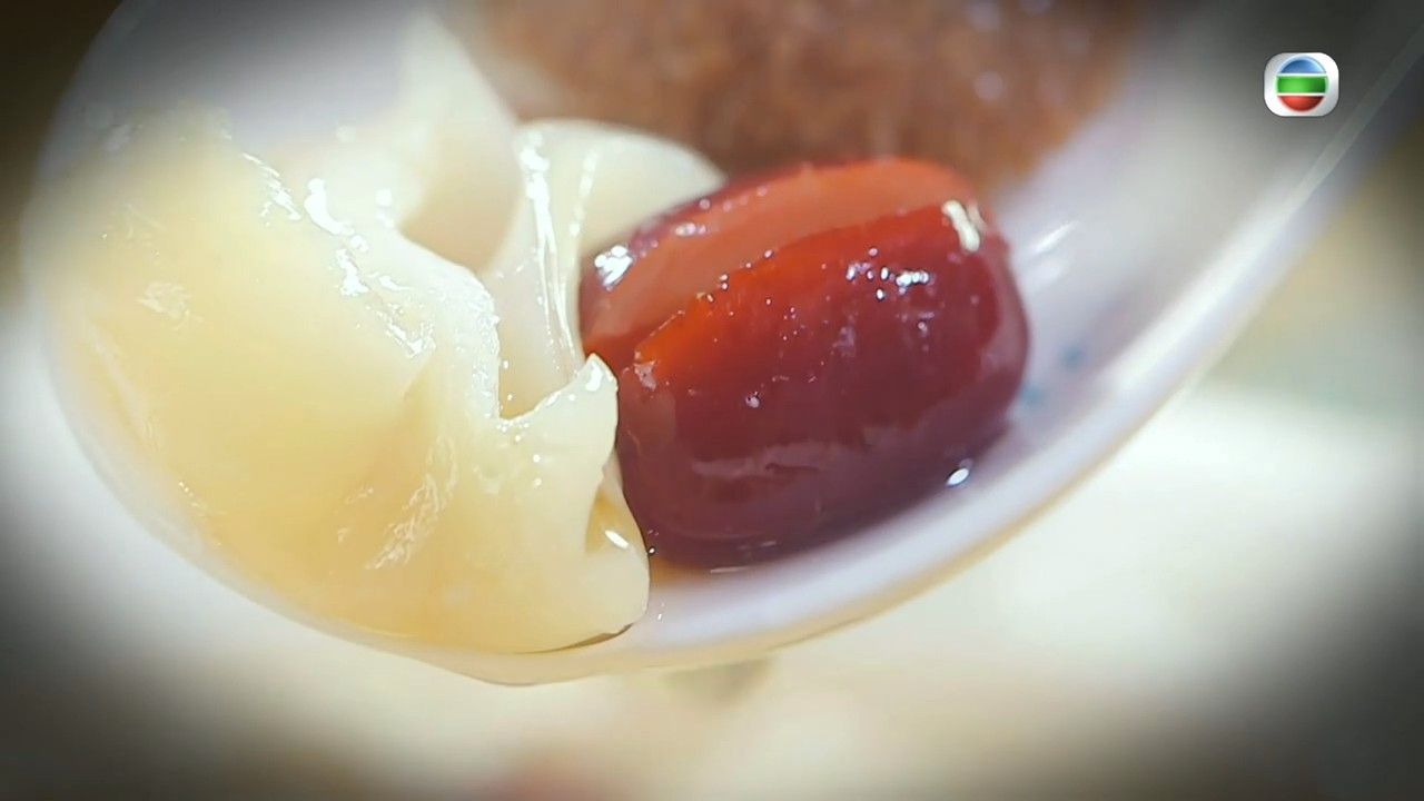 李家鼎(鼎爺)在《阿爺廚房》中曾教花膠南北杏糖水花,採用多種上乘食材,吃得夠潤。