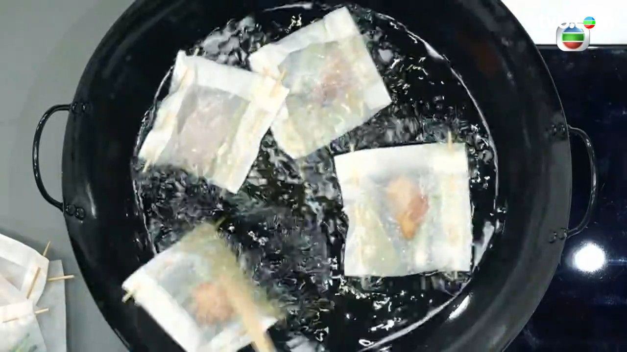 - 把紙包雞放入油鍋中炸好
