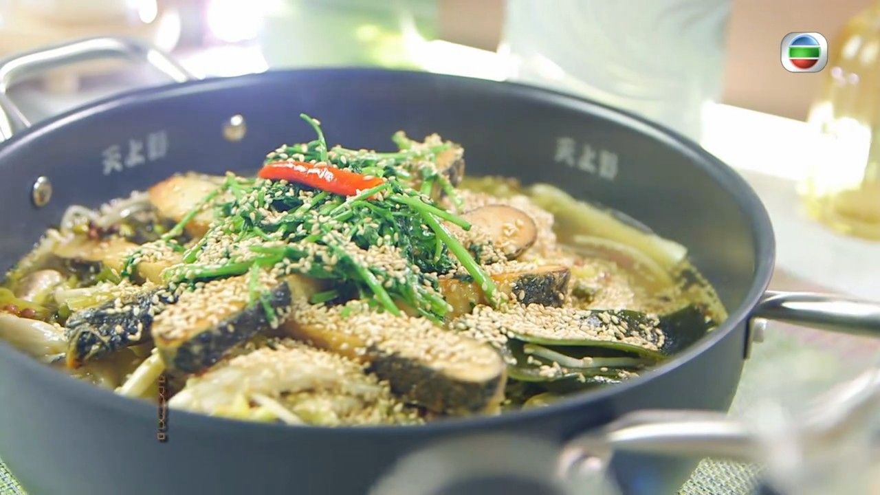 蕭秀香(三姐)、江美儀(美儀)主持的《女人必學100道菜》中,美儀曾教大家煮素酸菜魚,今次會用素魚、雞髀菇、海帶等炮製素酸菜魚!