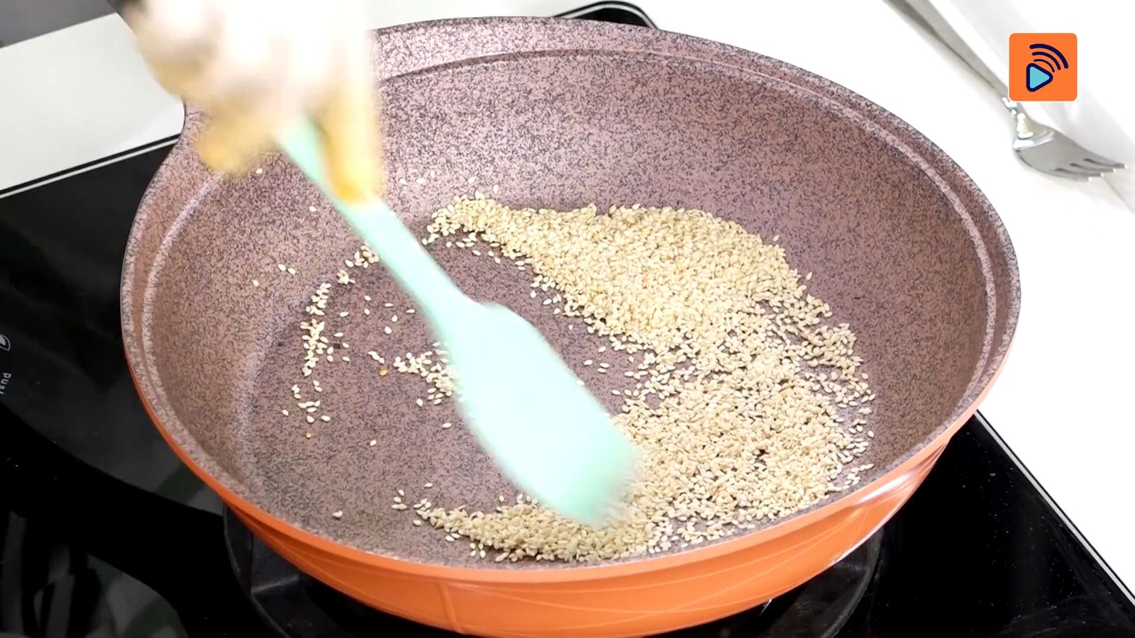 - 芝麻以乾鑊烘乾,備用;蒜頭用油鑊爆香,備用
