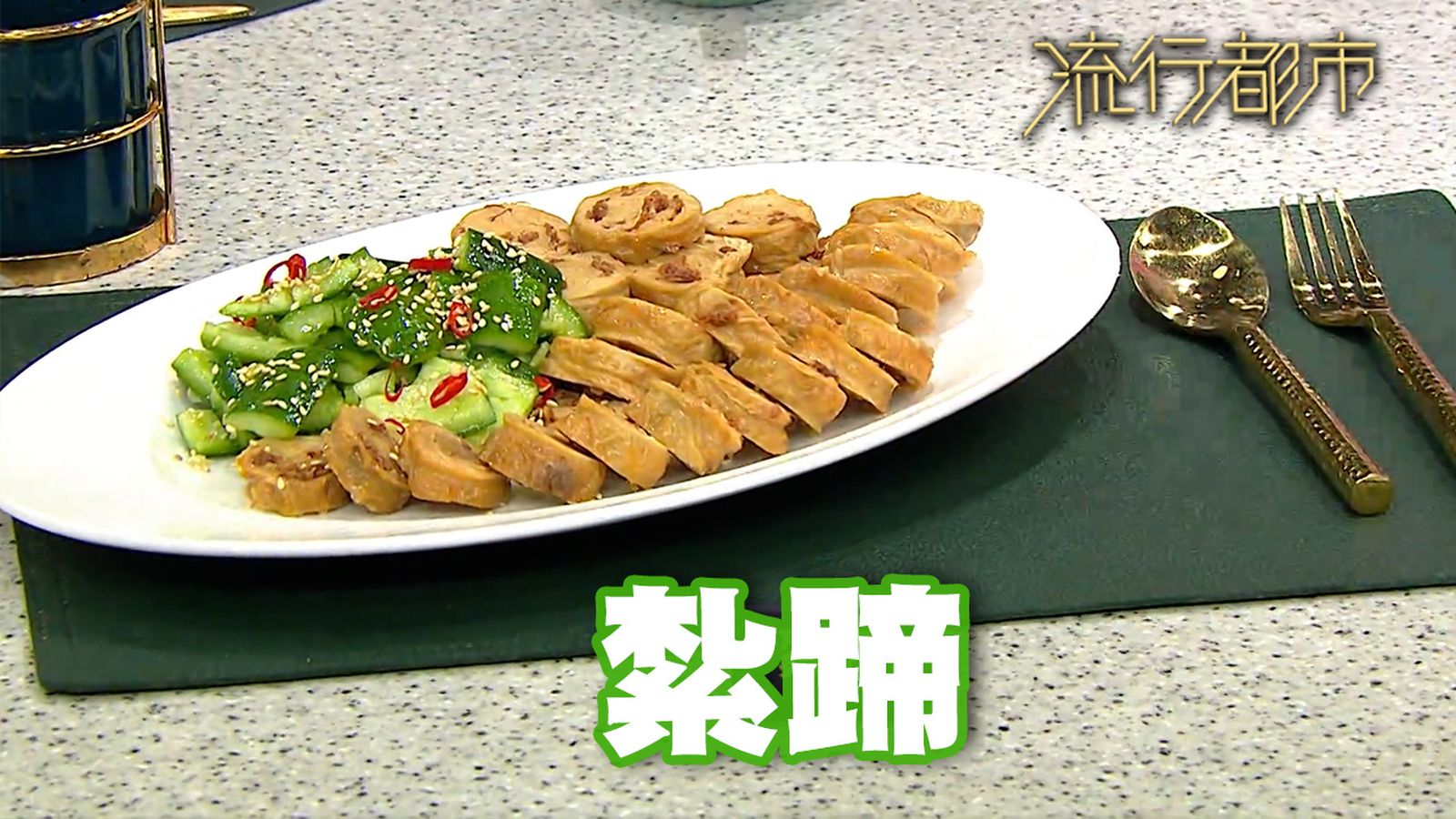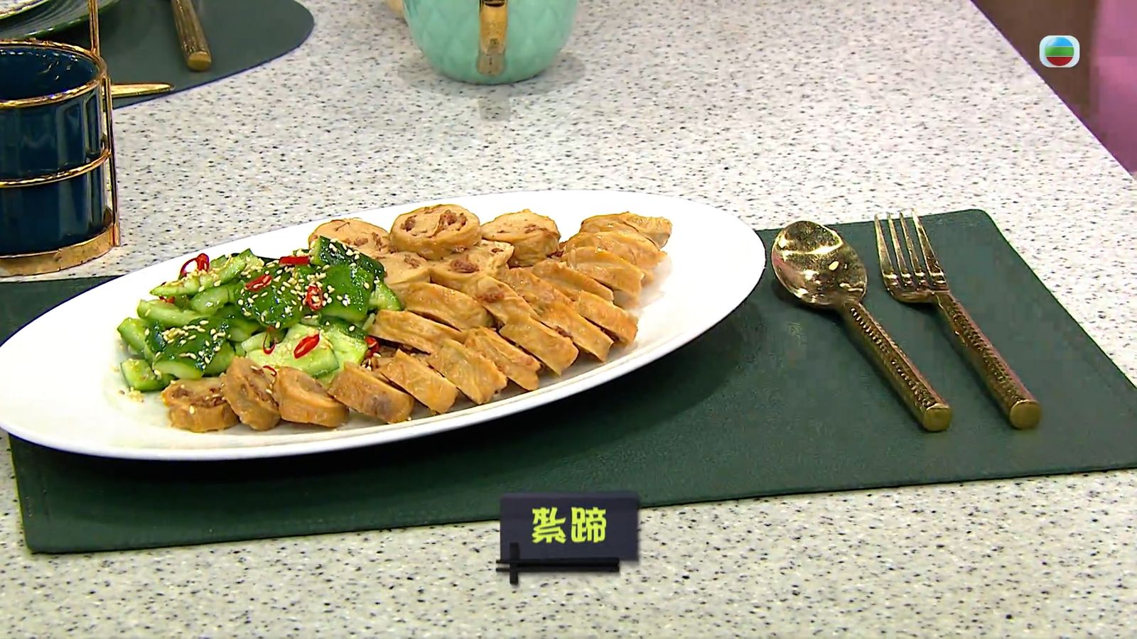 紮蹄去掉棉繩後切件置碟,伴上涼拌青瓜即成。大家快來試做吧!