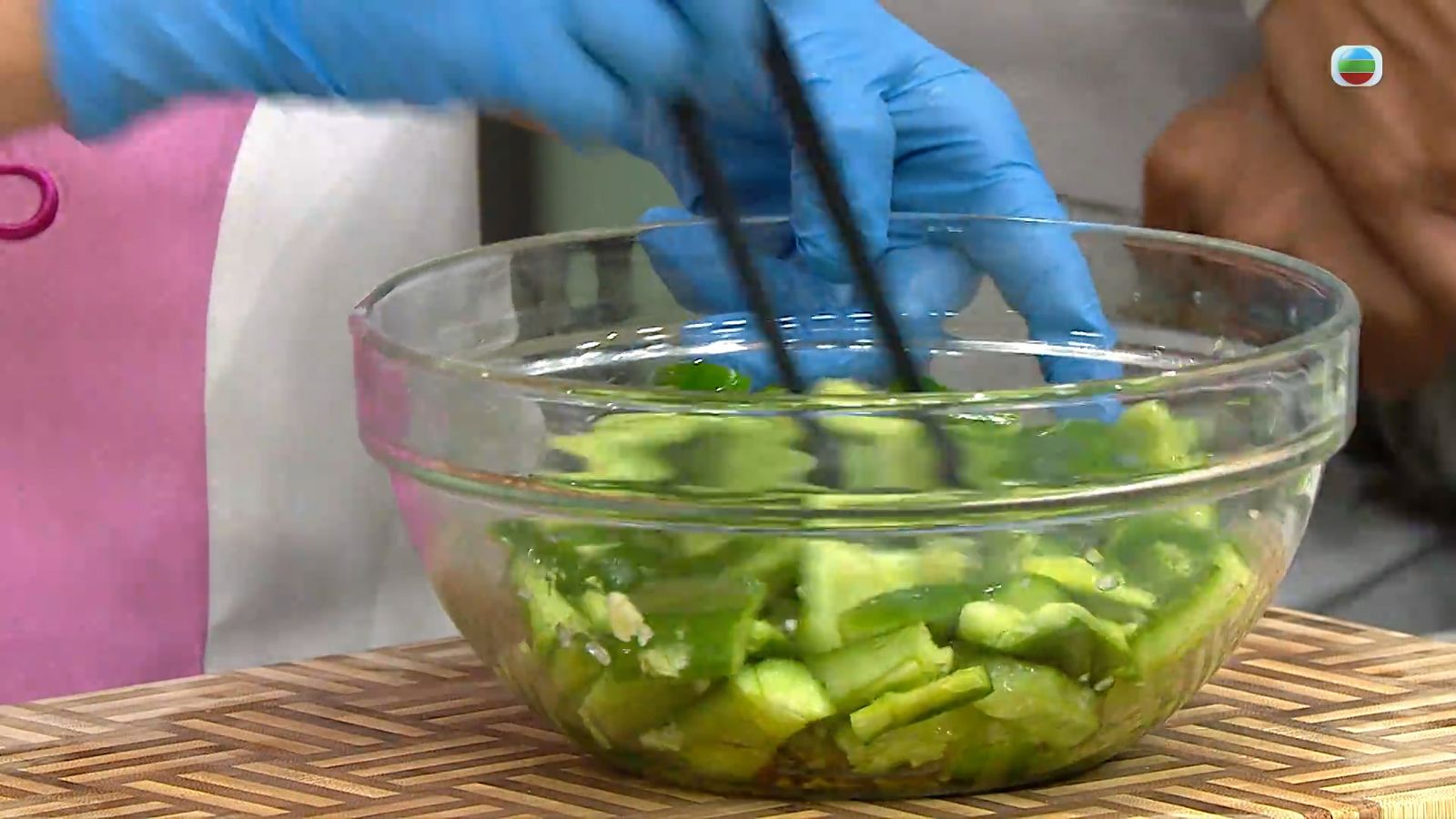 青瓜略拍後切件,下鹽拌勻略醃後隔去水分,拌入蒜蓉、麻油成涼拌涼瓜。
